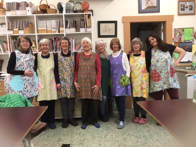 Kathy Provan from Sew Much More in New Denver https://sewmuchmoreyarn.com/ put on an apron class for some of our Guild members. It so funny because I could have looked at the fabric each person had picked out and known whose it was. We do each have our favourite palette’s, don’t we?