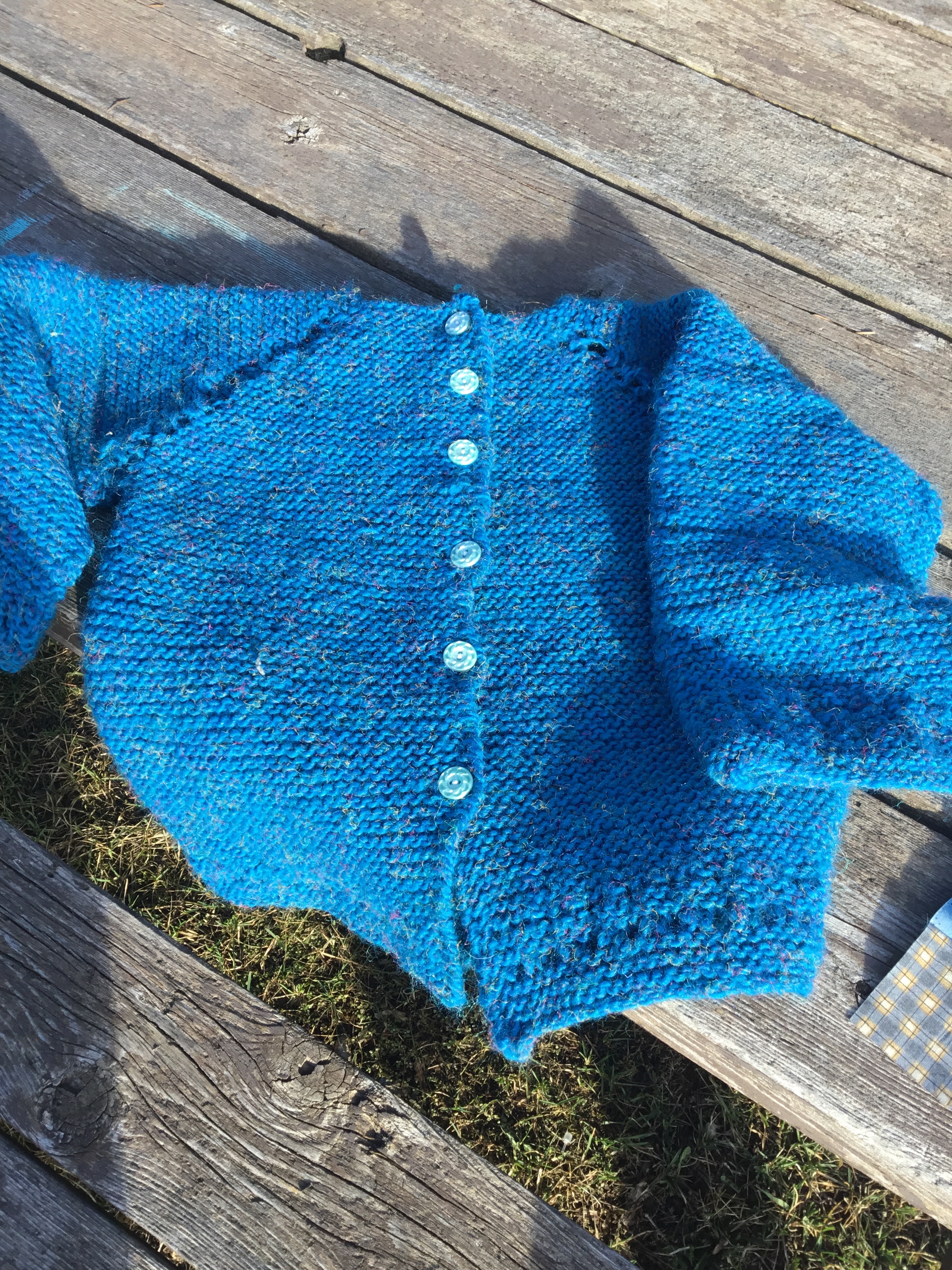 First up I have Charlotte’s sweater knitted, buttons sewed on and the parcel has been mailed! As usual, I forgot to take a picture after it had been soaked and blocked.