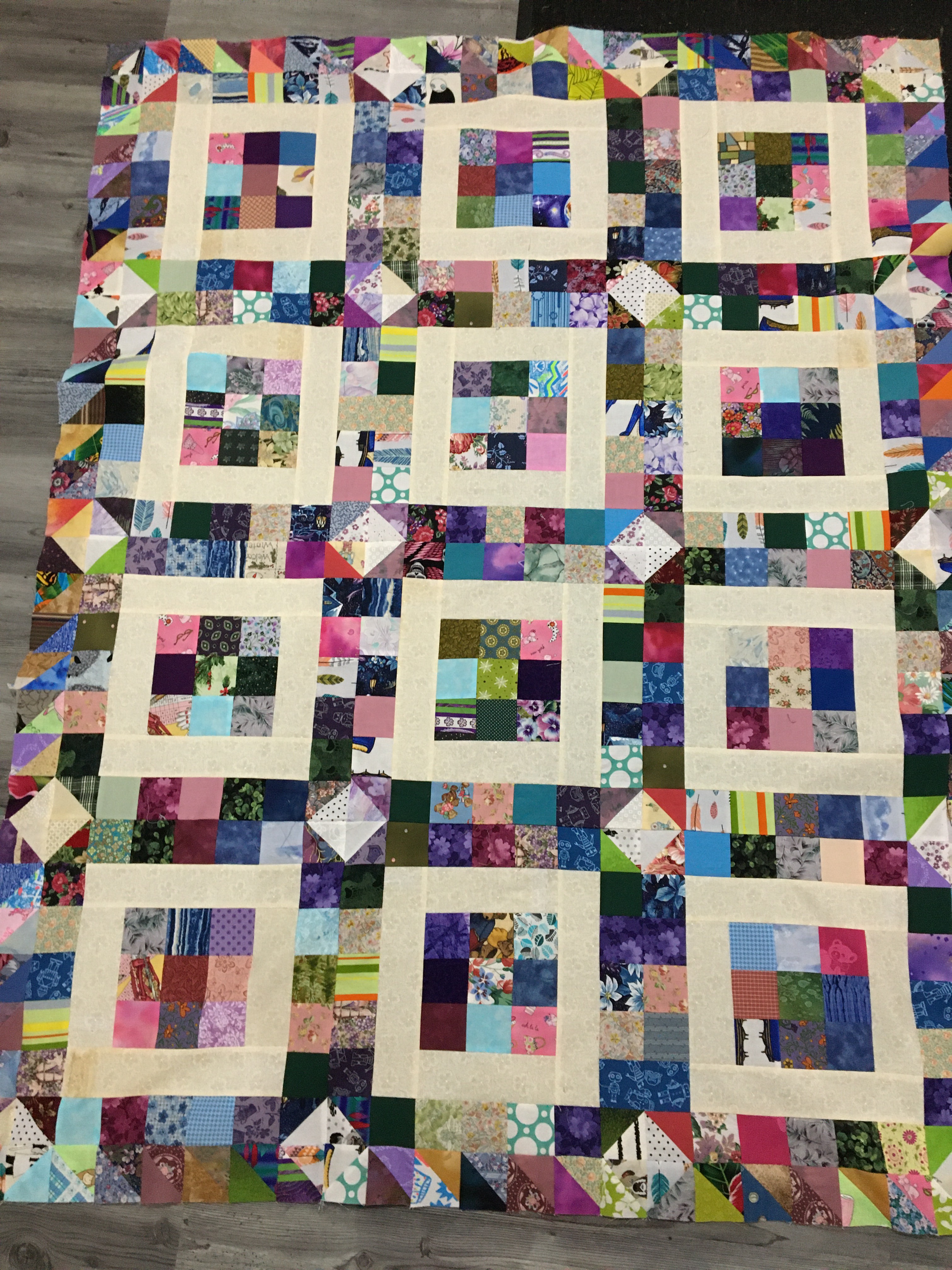 1. Assemble the top with the pieced blocks from the Vortex pattern by Wilmington Prints. Done