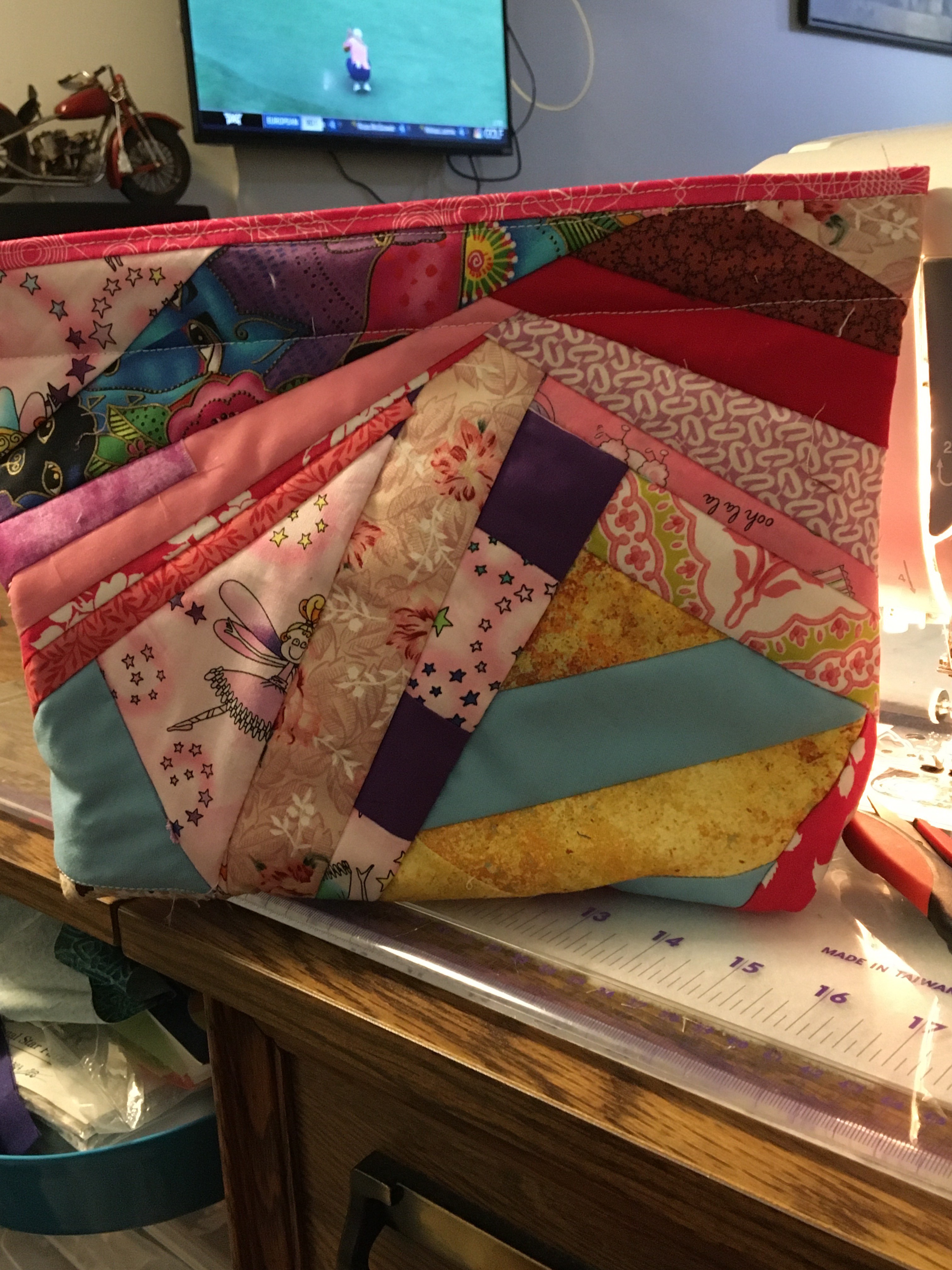 These two little runners and the table topper were inspired by two blogs I really enjoy Home Sewn By Us and Vicki’s Crafts and Quilting.