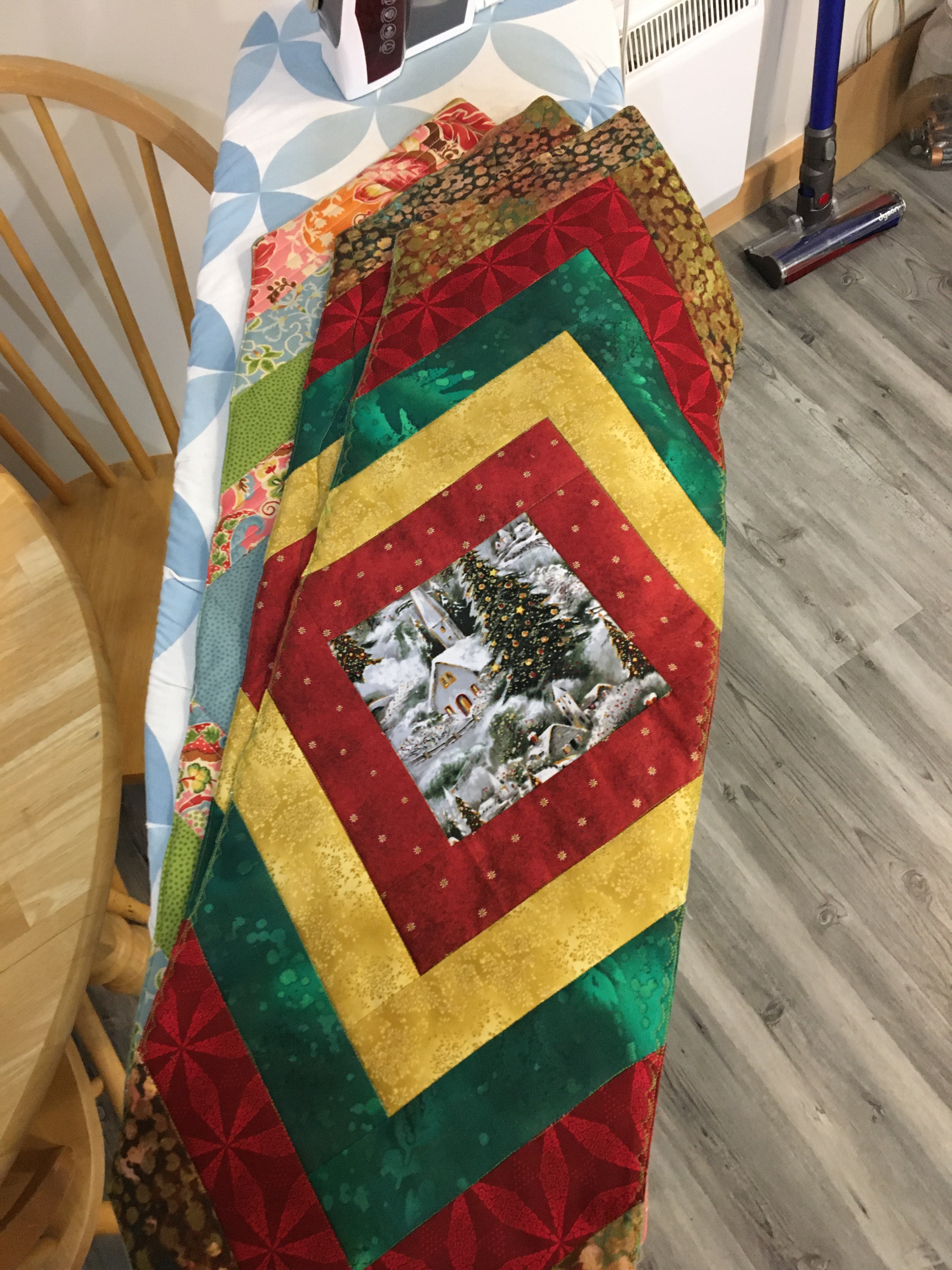My DH is the world’s biggest Grinch so I no longer decorate. Instead I make treasures and find new homes for them. These runners and the table topper will be the start of a box of donations for the Christmas Hampers next year.