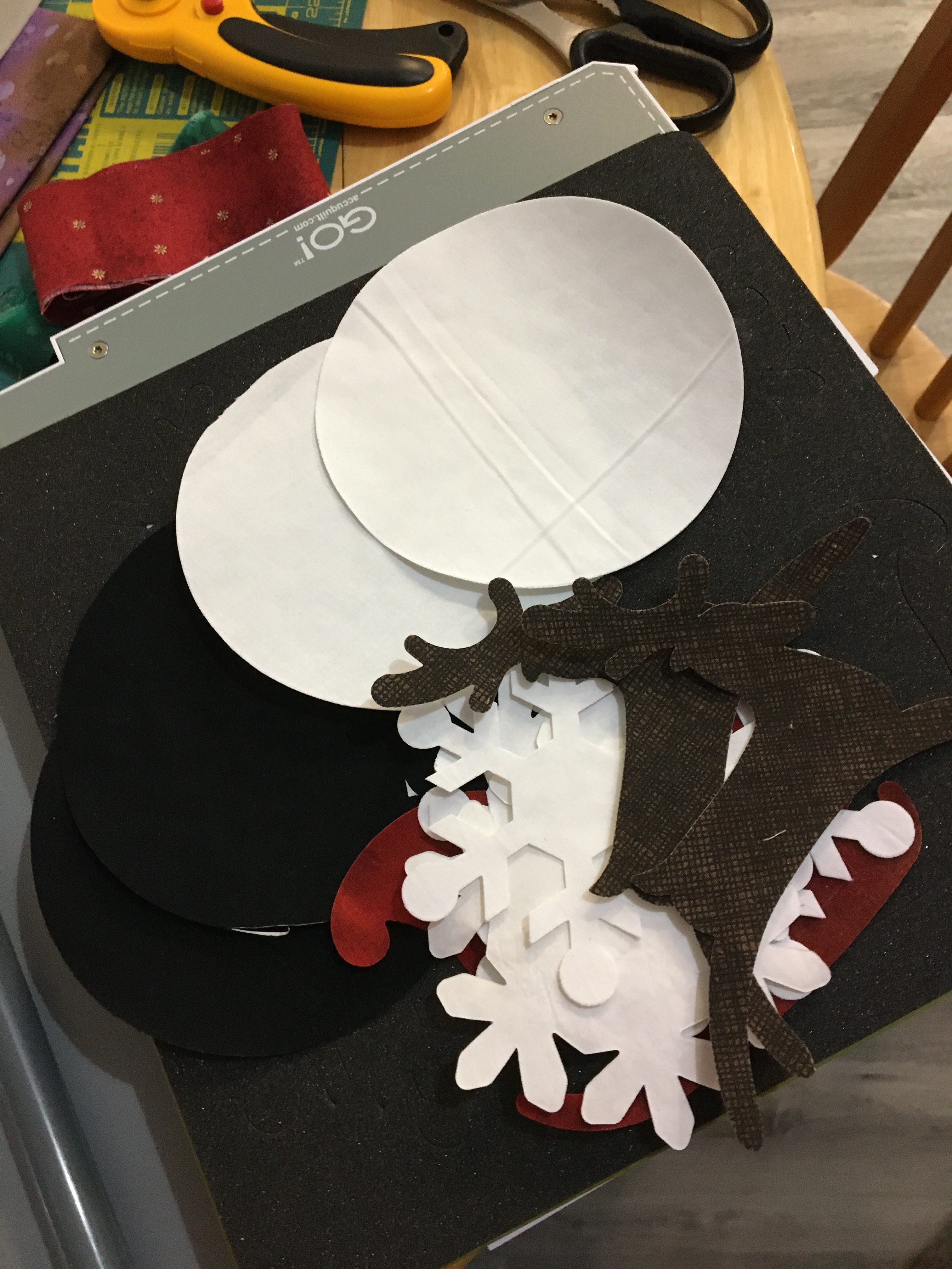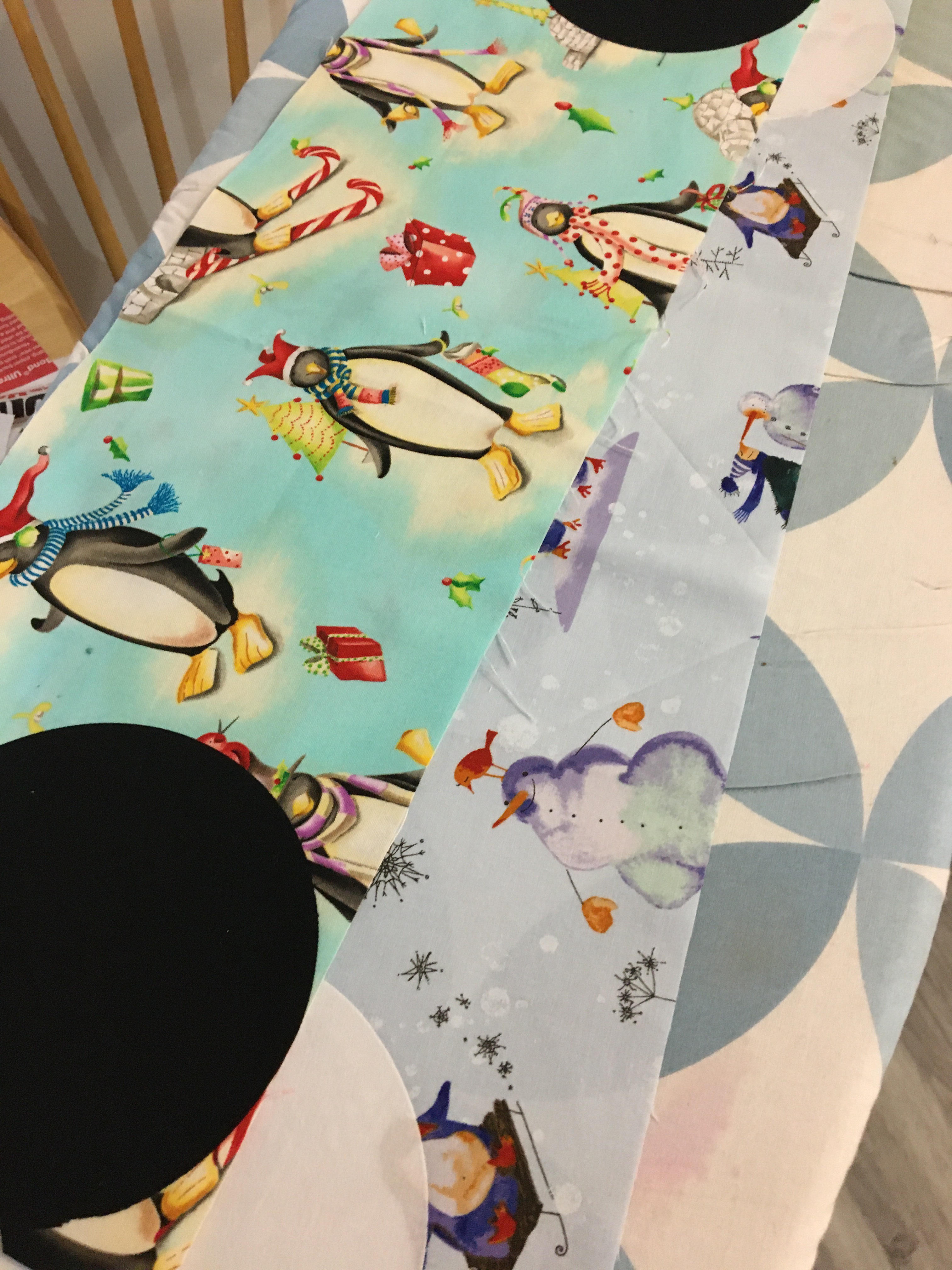 I had fun doing some appliqué and calculating (math sure is hard right now!) and ended up with these two runners being finished last week, except I just realized I forgot to embroider the snowpeople’s mouths! I’ll get right on that!