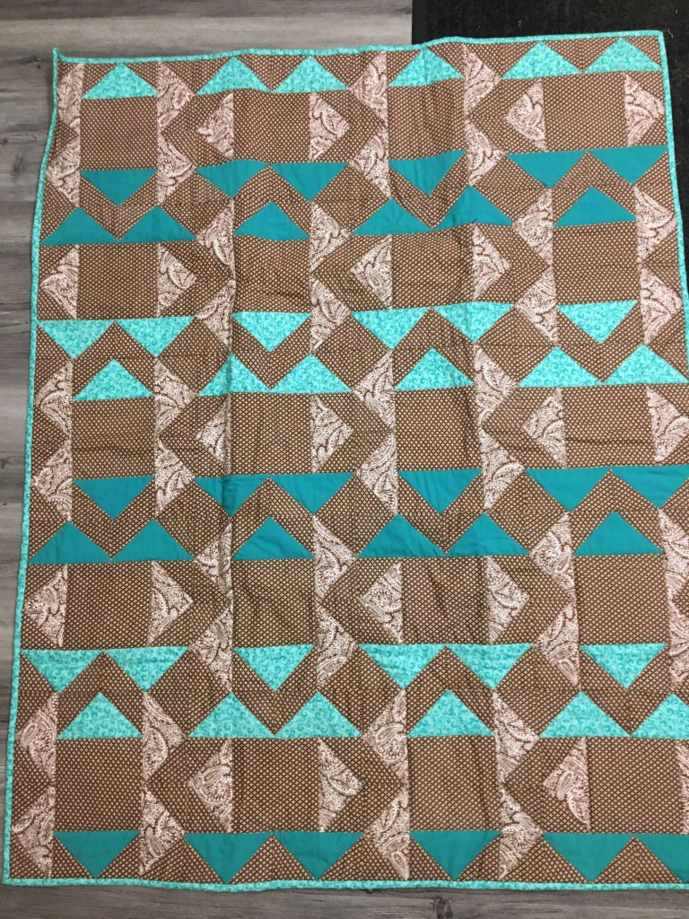 Hi Carol! Beautiful baby quilt and I’ll bet the Mom and baby will just love it. Becca’s pattern has kind of a Aztec vibe so your backing fabric is just perfect. Nice job! ~smile~ Roseanne