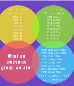 - • Twenty of us made it past 1000! That is way more than have ever made it past 1000 in any year! And . . . two of us made over 2000 blocks — WOW! Were we stuck at home or something? Haha!