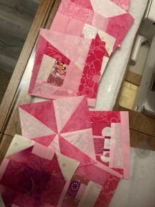 Your pink scrappy blocks are very pretty and I really LOVE the Christmas hexie table topper. Sorry to hear the news about your friend. Yes, he needs a quilt NOW! Hope you’ve been sewing away on it this past week!