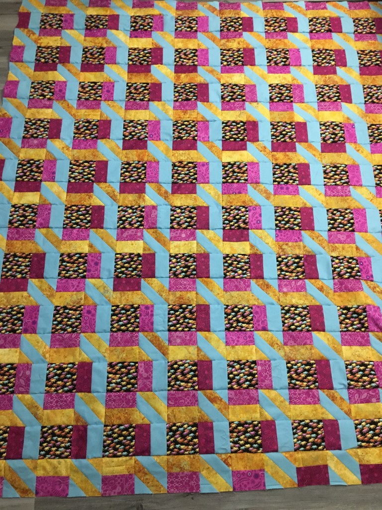 The pattern is “Garden View” by Barbara Gavlick Hartnett. This pattern is suitable for a beginner/intermediate or intermediate Quilter. The finished size is 68 1/2” x 84 1/2”.