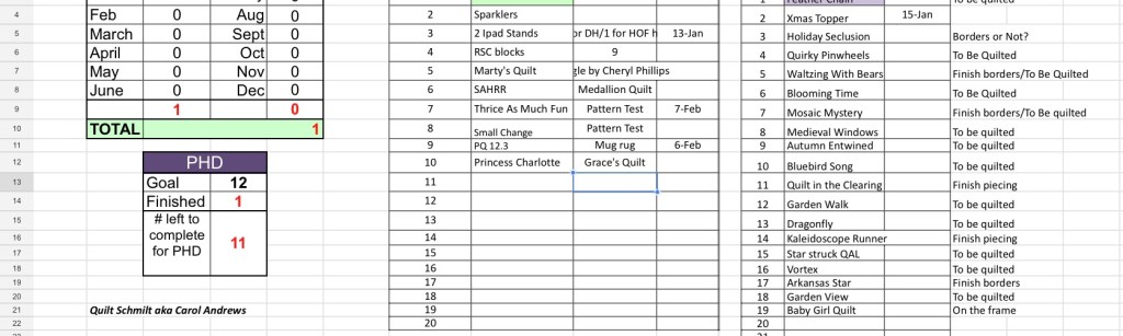 Here is my weekly list of what is happening in my quilting life; time spent, goals, stash and PHD Report.
