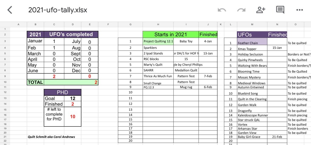 Here is my weekly list of what is happening in my quilting life; time spent, goals, stash and PHD Report.