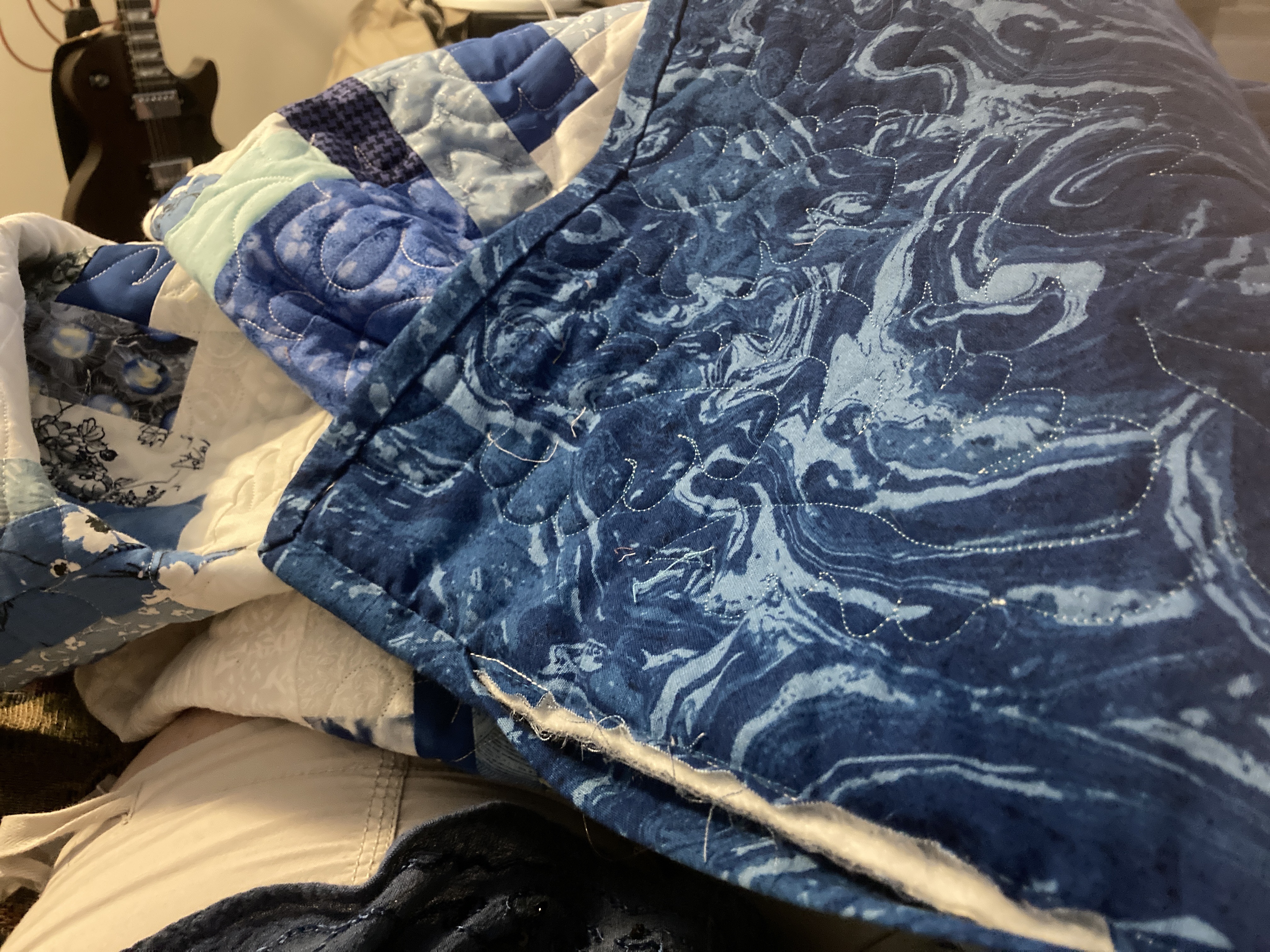 My third project is to get some UFOs and a commission quilt quilted and bound. My goal is to finish 4 of them while I am at the studio! Done!