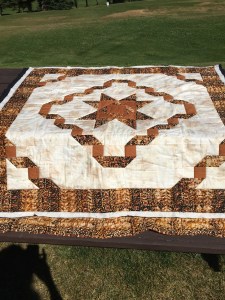 Then I thought I could get another UFO finished on my last trip to the studio. All I managed to get done was get it basted and the stitch in the ditch done around the blocks. This one has double batting and is for a friend who has MS and is now in a wheelchair most of the time. He is sensitive to the cold now just like my DH. The good thing with the horrible heat wave we have had is that our buddy isn’t cold so can wait until I can get back to the studio once the fire is contained.