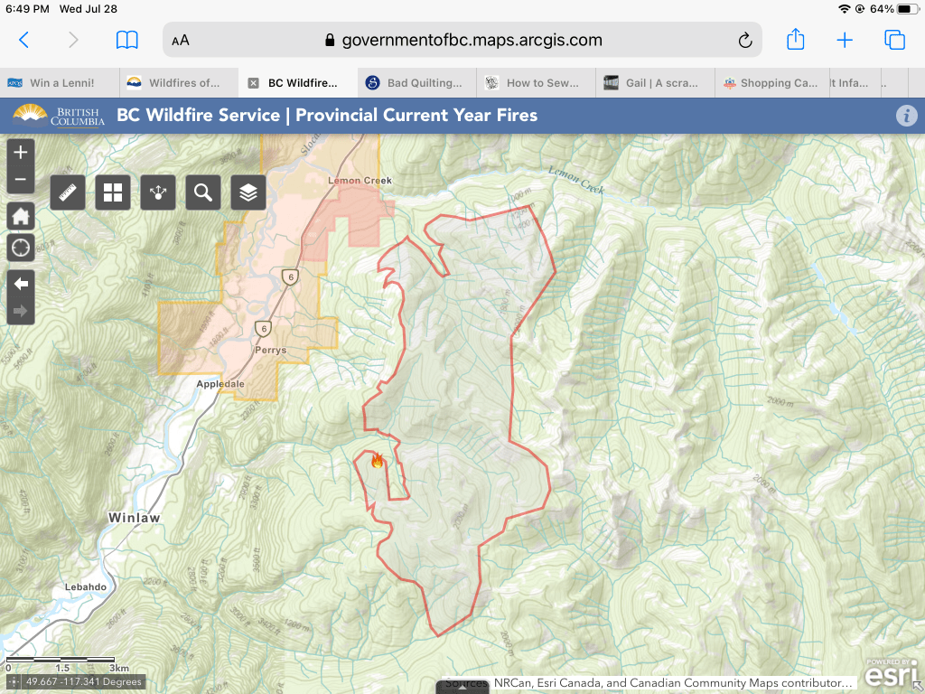 1. Thank you Gail 😊 Sandra’s pattern is just too much fun. So far the fire breaks they built on the ridge are holding. Today was 5 helicopters, 90 firefighters and 21 pieces of heavy equipment working it. I think we’ll be okay. I’ll just keep sewing.