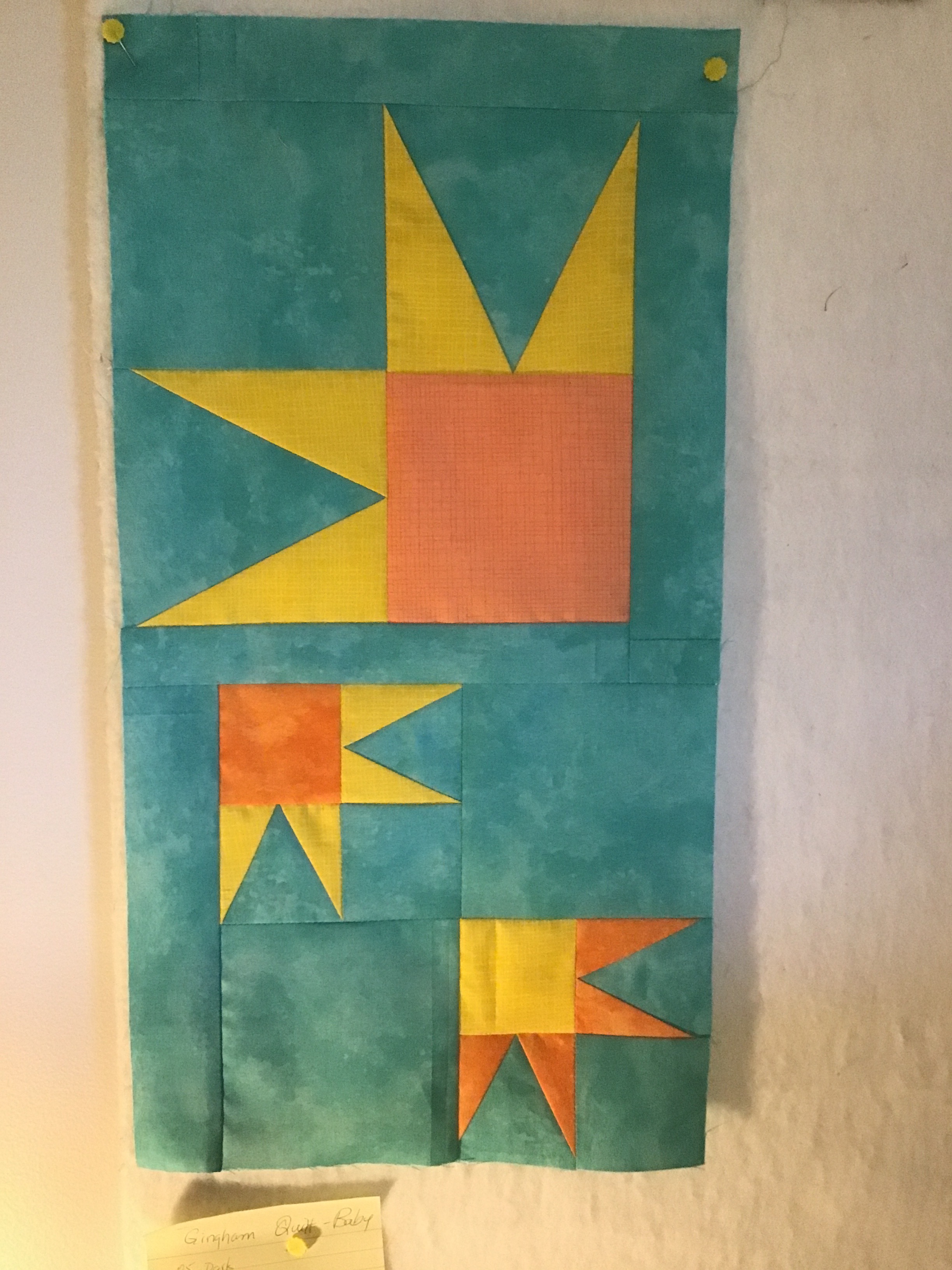 1. Replace the background fabric that didn’t work for me on the Flat Topped Scrappy Pyramid quilt Done!I really like the background fabric I used. I wasn’t sure if it would be too busy, but to me it works! Now it’s in the To Be Quilted bins.