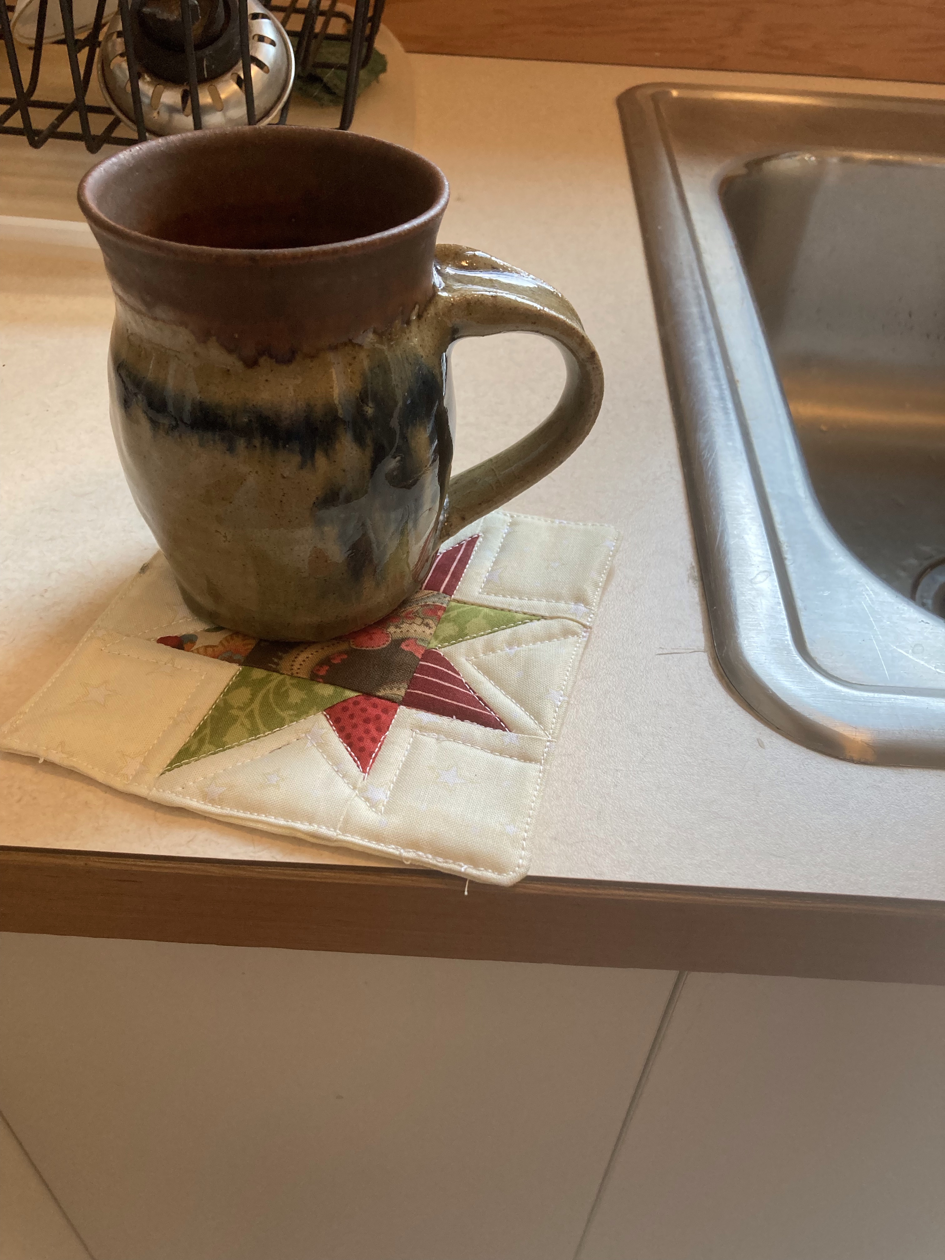 In all I finished 3 dozen projects so far; quilts, placemats, tree skirts, mug rugs, covered journals, knitted/felted slippers, knitted and felted hats,