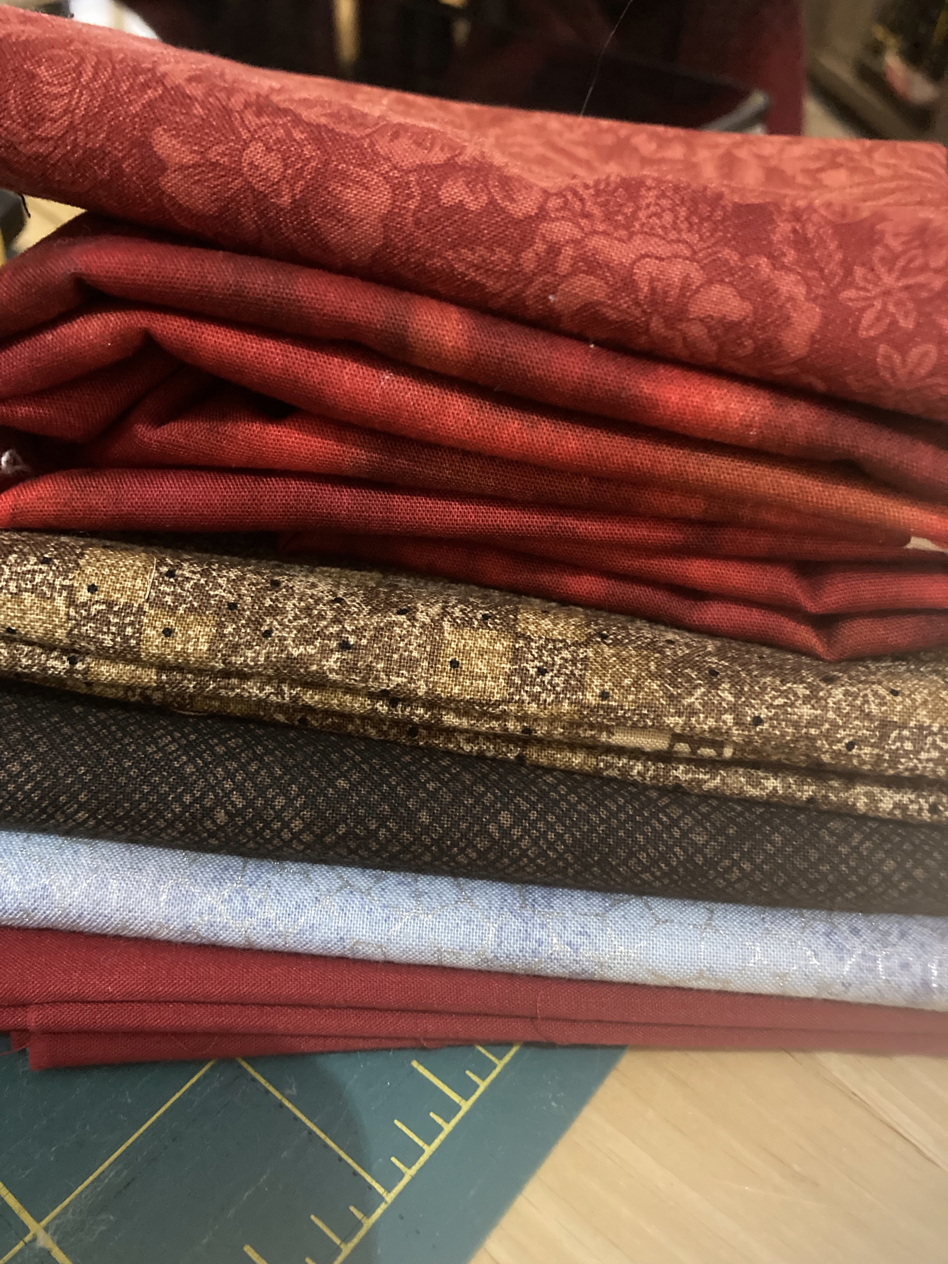 My SAHRR will be made using the block I made for a pattern test (can’t reveal it just yet 😉) using these scrap pieces of fabric and some yardage: