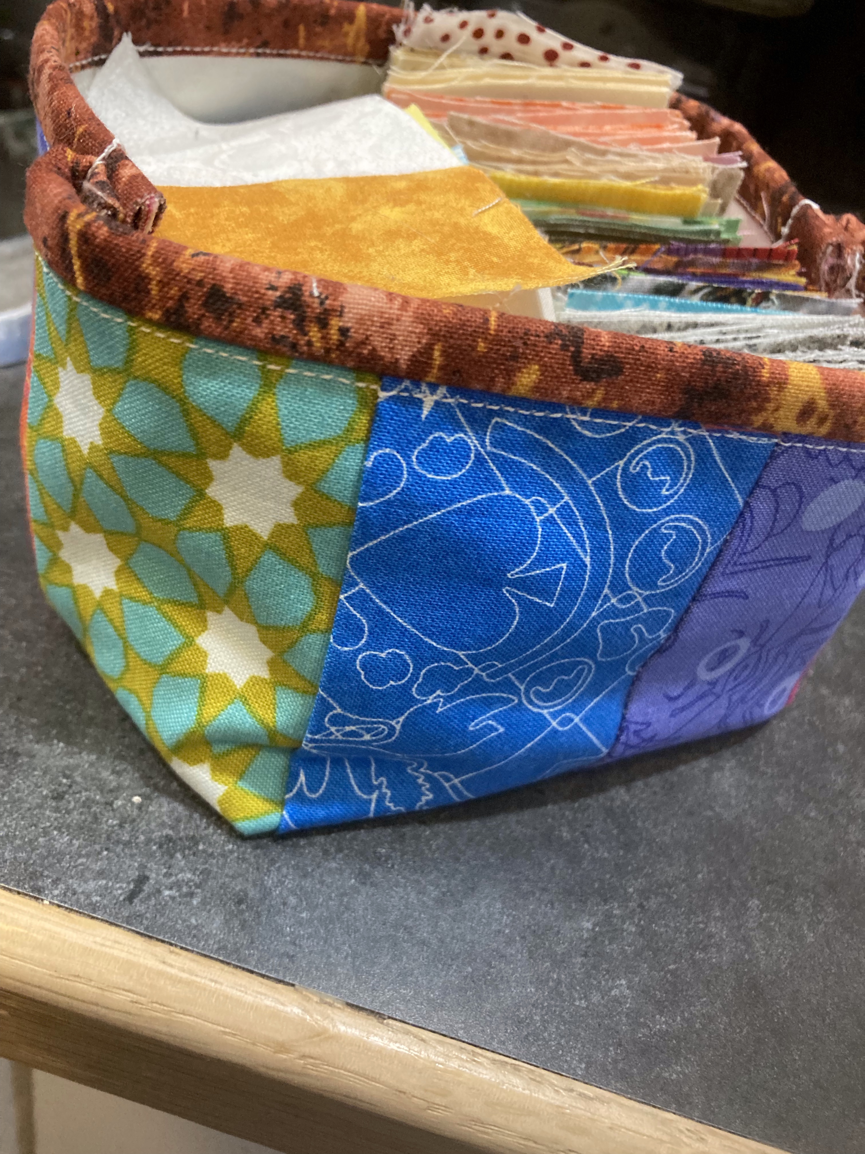 I’ve always enjoyed playing with scraps, but have been making a concerted effort to use up my stash and my scraps since the Pandemic began. I have purchased some fabric in person when storefronts finally re-opened, but find shopping on line to be an imperfect solution when the stores are closed.