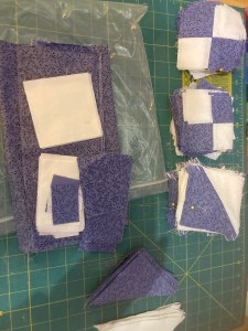 Now you all know that there is nothing better than a baggie of fun scraps or leftover bits to inspire a combination of fabric fun and mad jigsaw puzzle skills. Since the pandemic began and fabric stores closed, I decided that playing with my scraps was going to be a priority as well as working from my stash.
