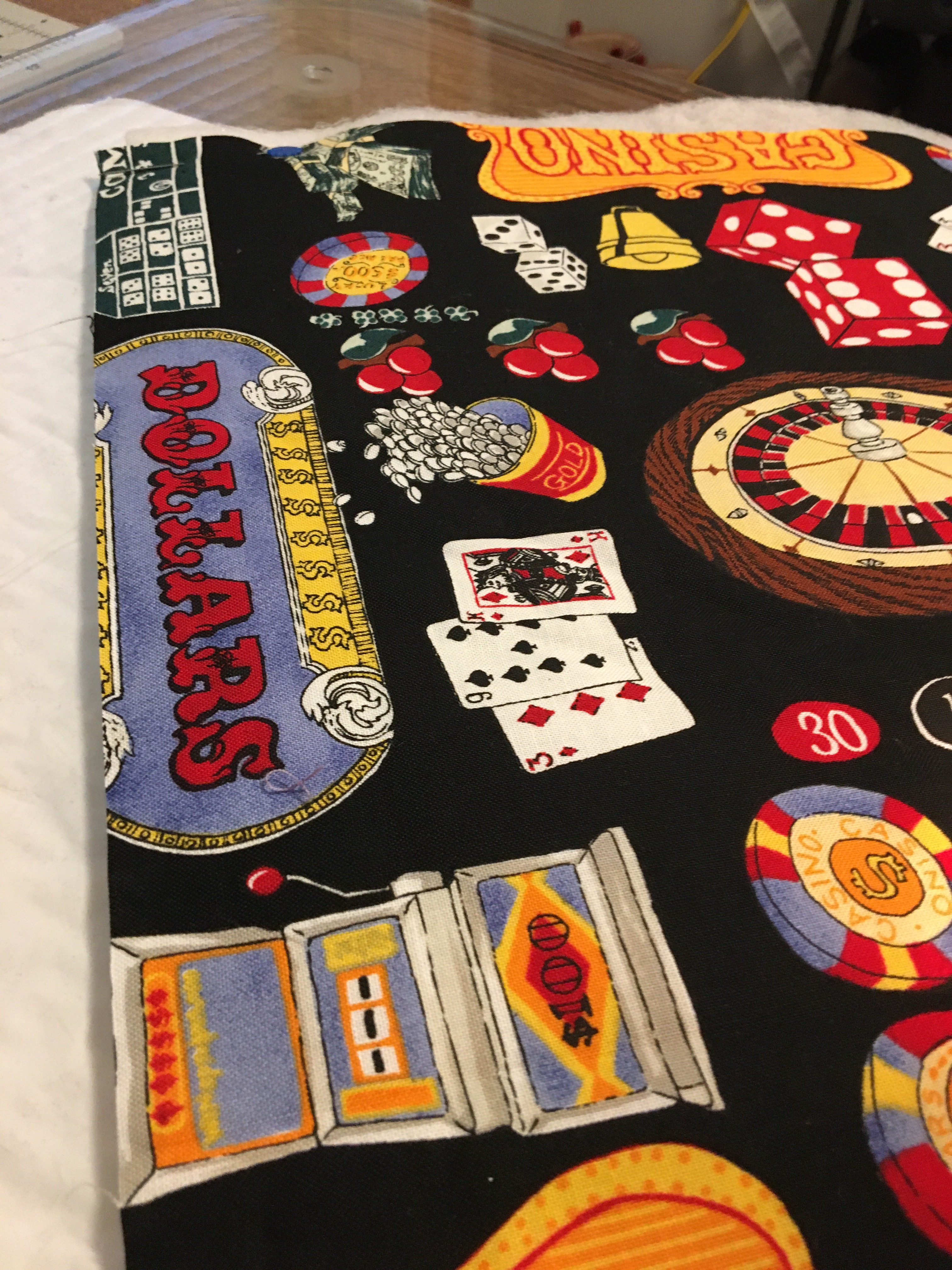 This was the prompt we received for the challenge this week from Kim. Seeing the logo for this challenge made me think of some cute card fabric that I had. Then I remembered that I had used all but a few scraps when I made a caddy for DH when he had his knee replacement surgery last year. 🤔