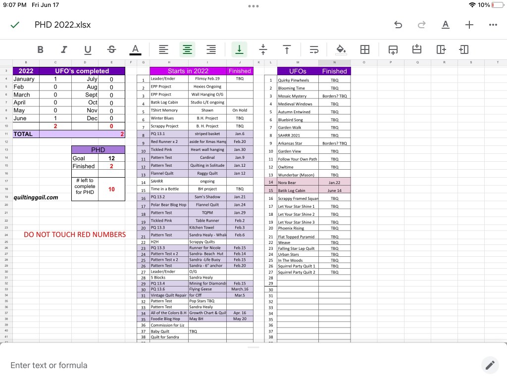 Gail from Quilting Gail PHD Report is hosting the PHD in 2022 again. I really enjoy keeping track of things and seeing if I can get 12 of my UFOs finished up.