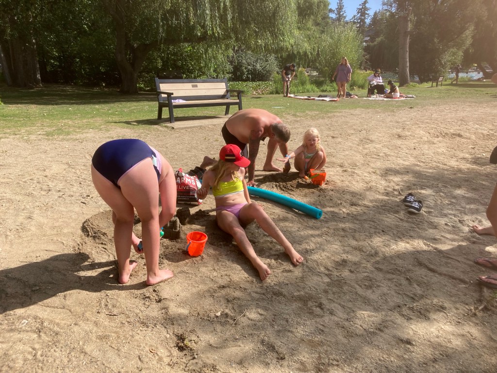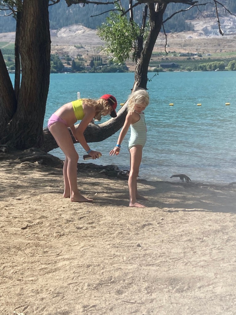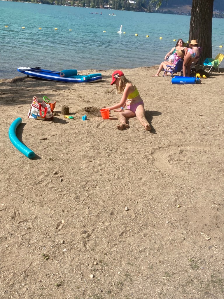 I love my friends and family and was cheered by a surprise while I was at the studio this time. My son, daughter in law and 2 granddaughters came to Kelowna for a last weekend before school started. I managed to have lunch with them one day, a short visit on the lakeshore while they were out on a boat and then a few hours at a favourite park which also has a bit of a beach.