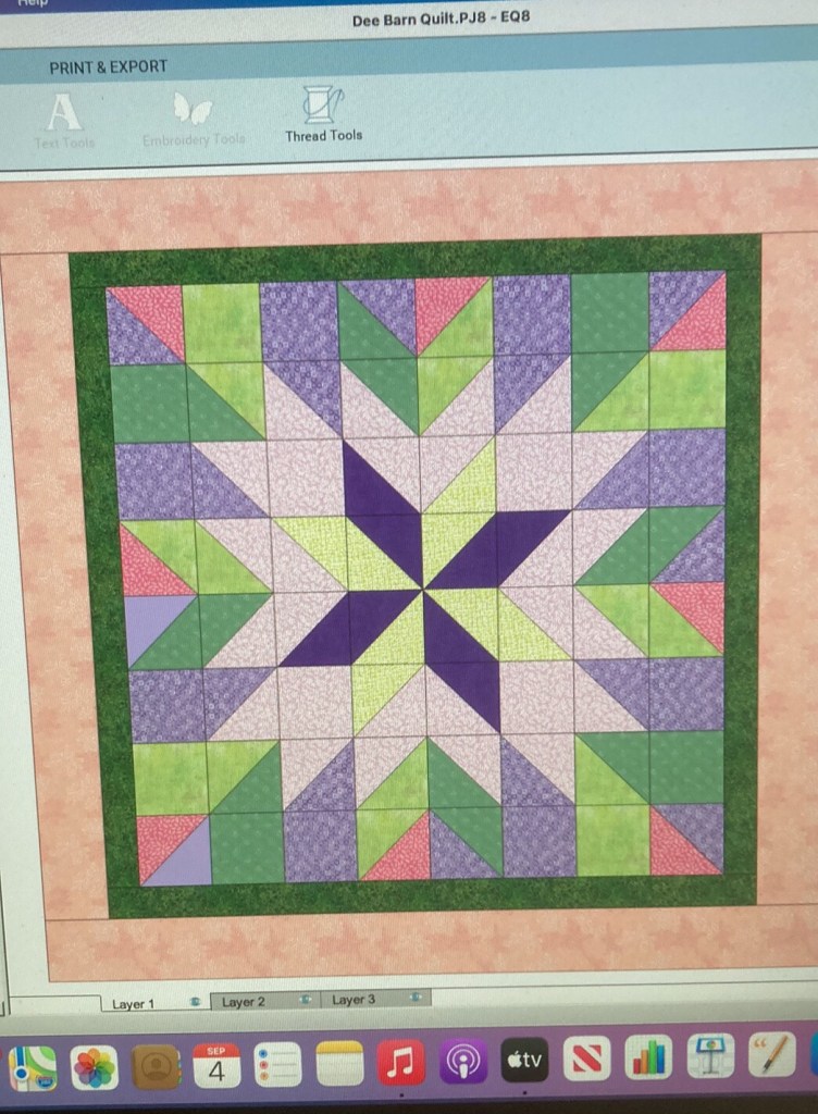 3. When I get back to the studio, if time allows, I need to quilt my version of A Roll of the Dice which is on the frame.