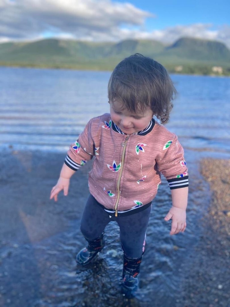 My grandson’s partner just spent a couple of weeks in Newfoundland so that Grace could meet that side of the family. They had a wonderful visit and it is so good to see that Grace’s therapy is working and she can now walk normally and had so much fun splashing in the puddles and walking the shoreline by the ocean!