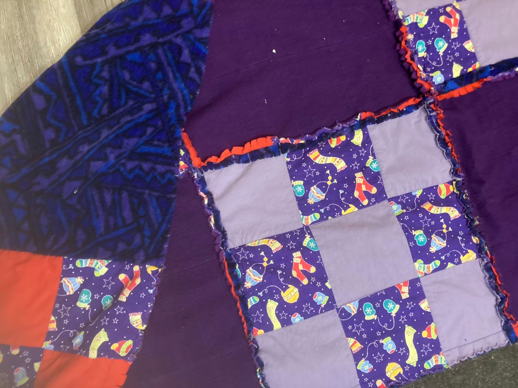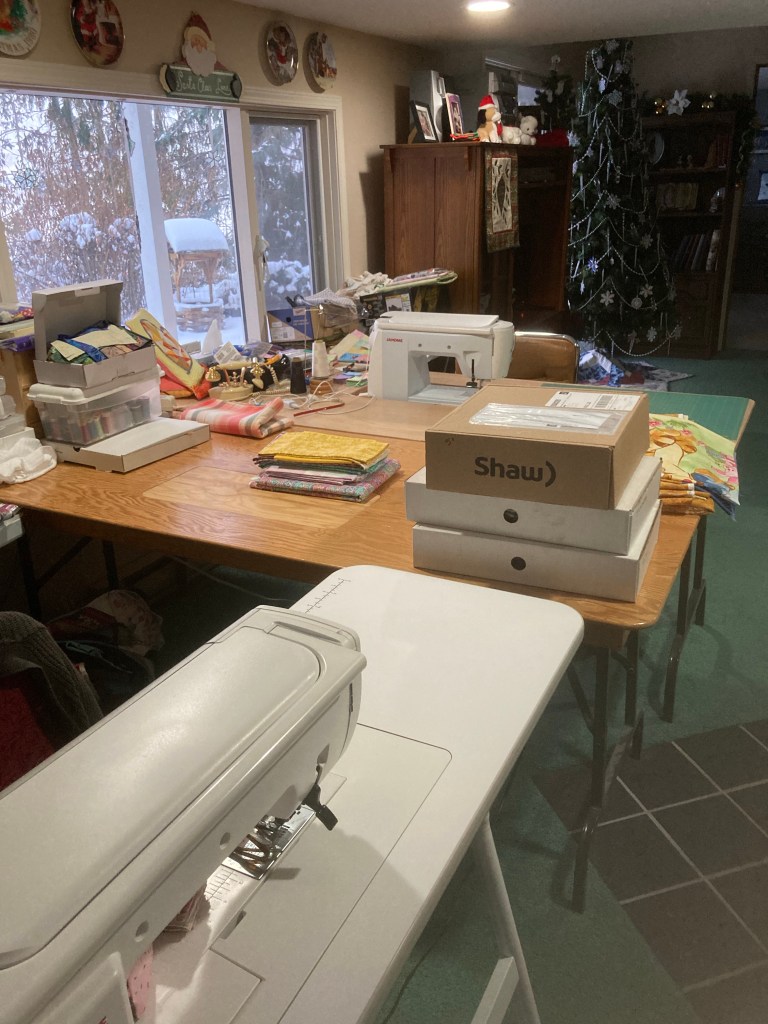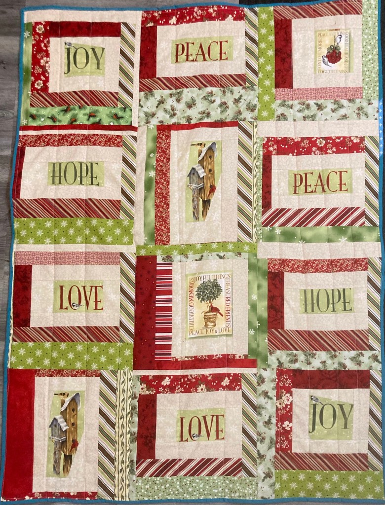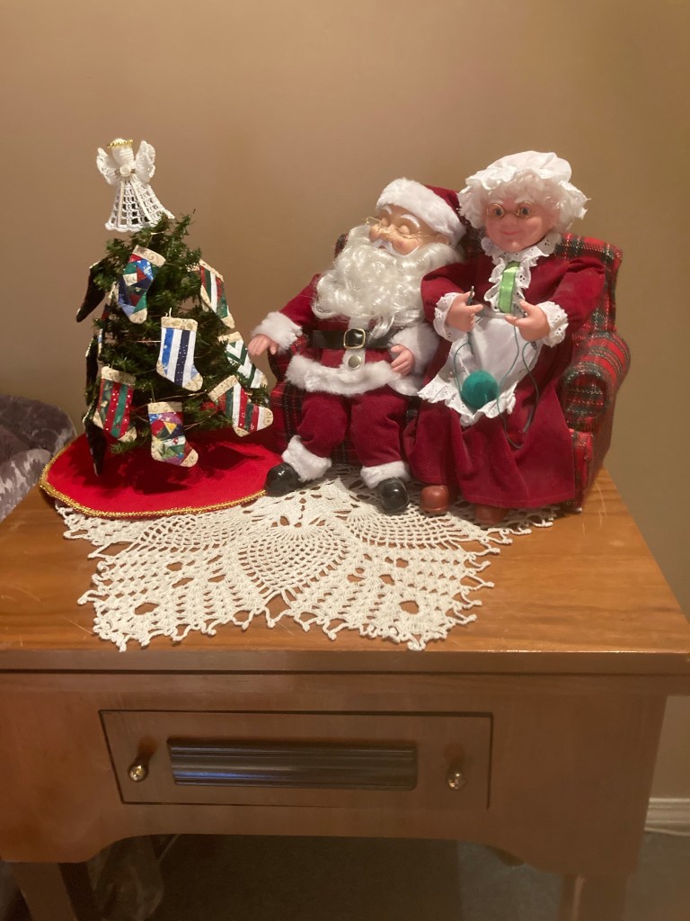 Like most quilters, I do enjoy being able to help my community with my quilts. This year at our Board meeting we were informed that the society that does the Christmas Hampers has had another increase in the clients they provide for. They always manage to get great gifts for the kids, but are always short of items for the seniors or people with disabilities. I was able to produce a few items this year (with help from the amazing people who donate fabric, UFO’s and scraps to my projects).