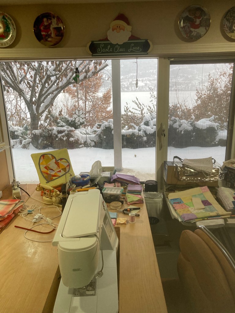Wednesday was a day spent fondling fabric (which everyone knows I love), doing some hand stitching by the fire and having phone and FaceTime conversations with family, while old Christmas music from our younger years was playing on the radio in the background. Did I mention it was -27 Celsius? Such a blessing to have this time with a wonderful friend.