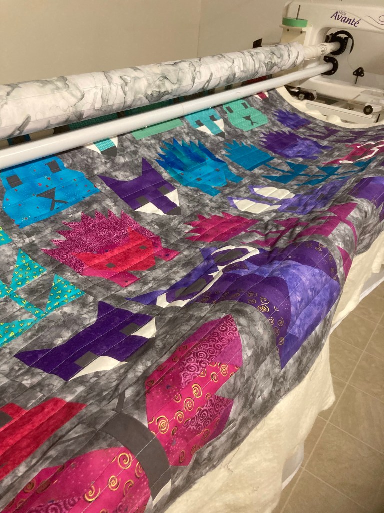 As this post is going live, I am back at the studio. My longarm was calling with a commission needing to be finished and D needing help with a couple of chores. 😁