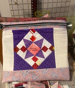 I’m not doing the SAHRR, but from looking at all the progress for those who are doing it, I am beginning to see a pattern. Spools, stars…. I like all the combinations. I also like your zipper pouch, really cute.