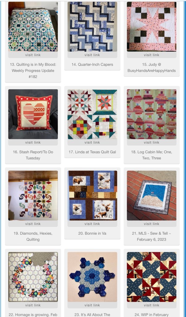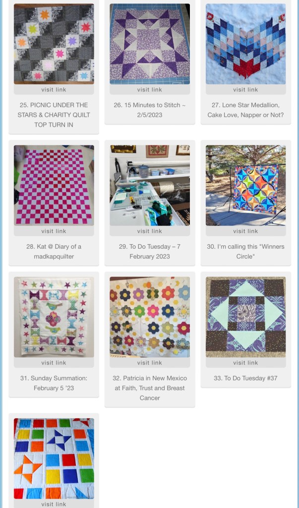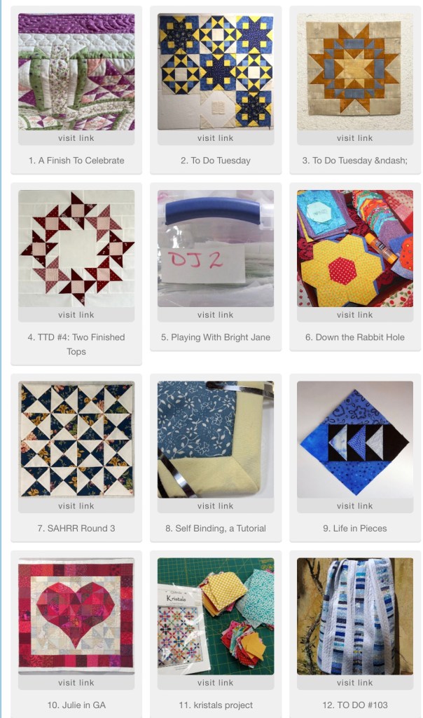 Congrats on a big sign up group last week. I had to really search to find my entry — how could I have forgotten in just a week! I’m hoping I can knock off a couple of more items on my to do list this week.