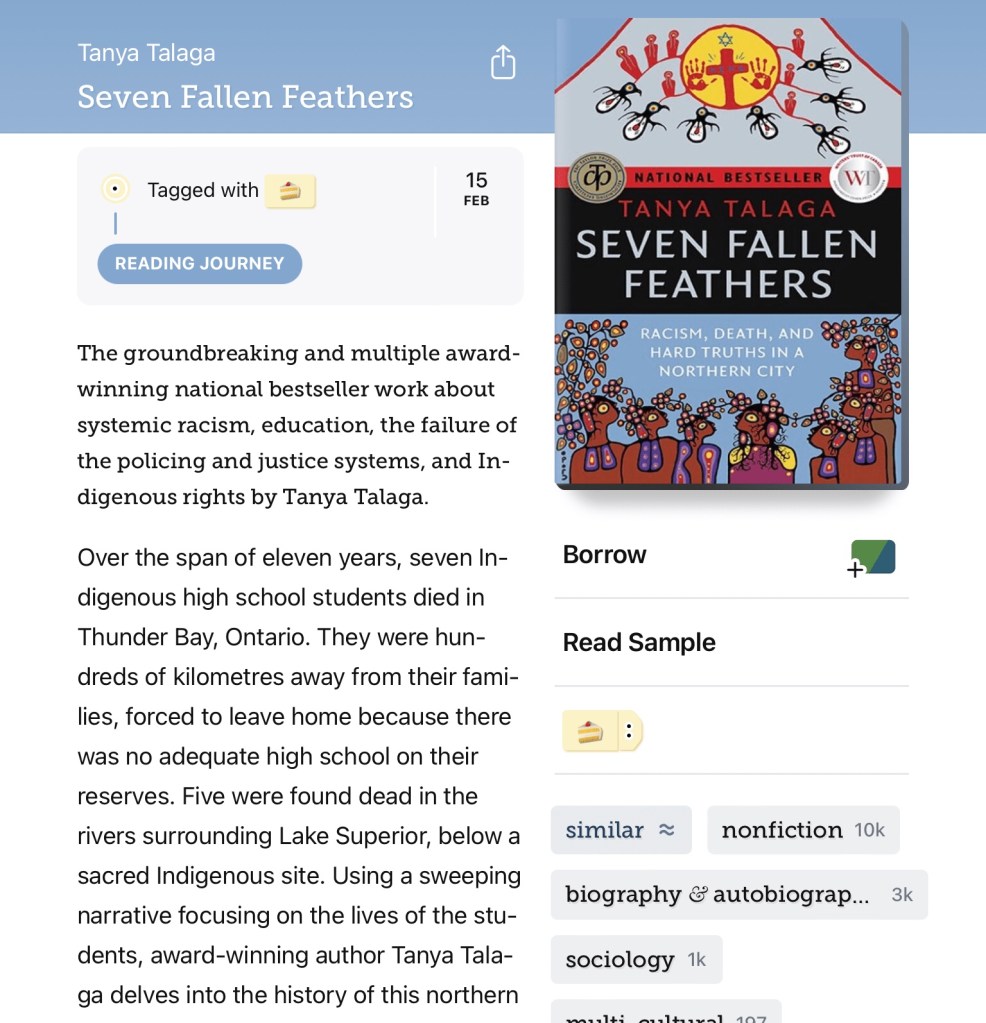 I have always been a person who enjoys reading and have added listening to audiobooks to my list of things that bring me joy more lately. I listen to audiobooks while I’m driving and usually read a book for an hour or so before I go to bed. My reading ranges from every genre, but have found that since the Reconciliation Report was published and they have been finding the unmarked children’s graves on the Residential School Sites here in Canada, I have been doing more reading on Indigenous Issues. It has long been known that our police forces have had problems with being biased and not investigating the cases of missing and murdered persons. I am currently reading a book that tells the story of seven murdered students in a community I have connections to. It’s a wrenching story, but one that we are all too familiar with. I borrowed it in digital format from my library and am going to manage to read it at least twice before it needs to be returned.