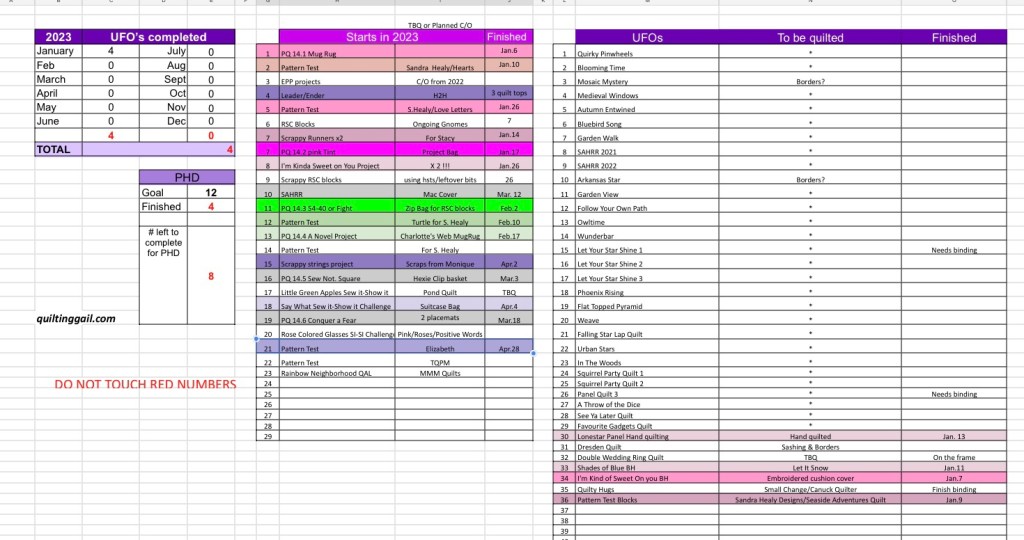 Quilting Gail is hosting her PHD in 2023 Challenge again this year. 😉