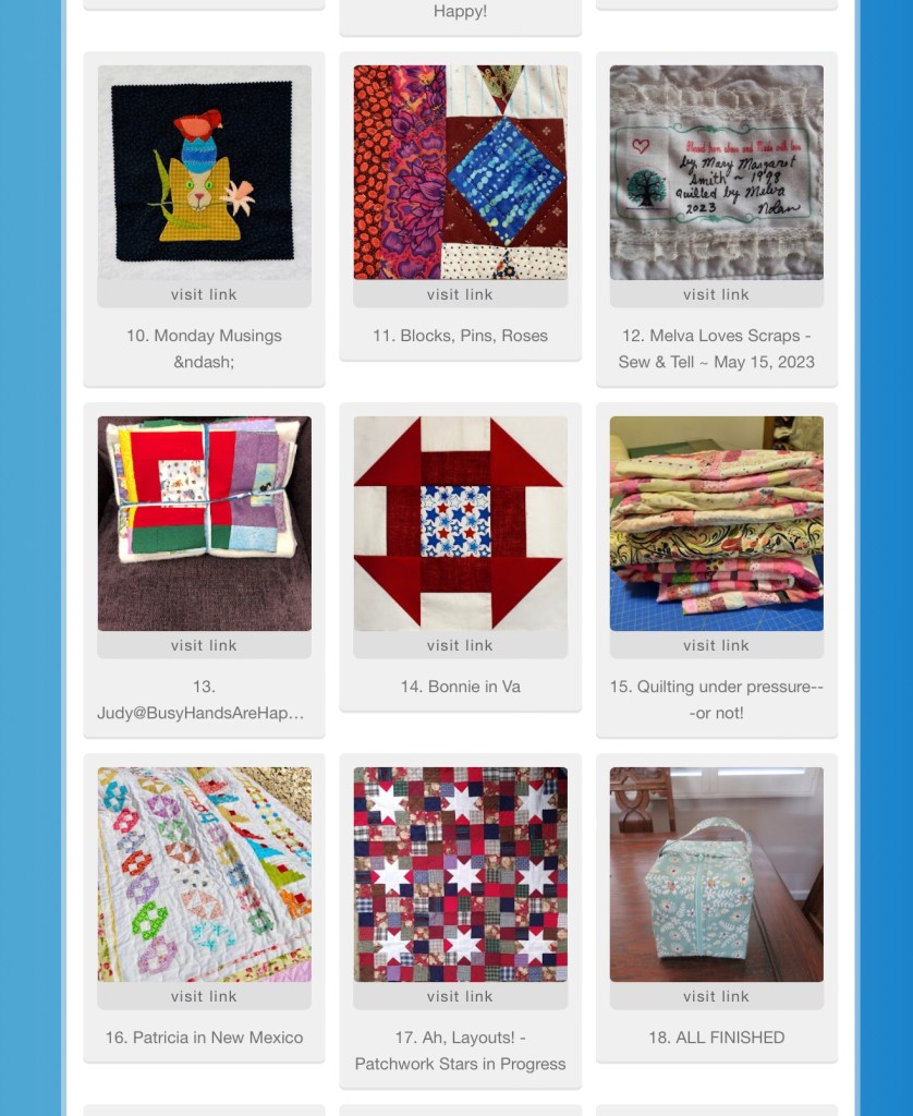 It does feel good when we get to sew every day, doesn’t it?! I miss it when a day or two goes by without a little time in the sewing room. Have a great week, and thanks for hosting us!