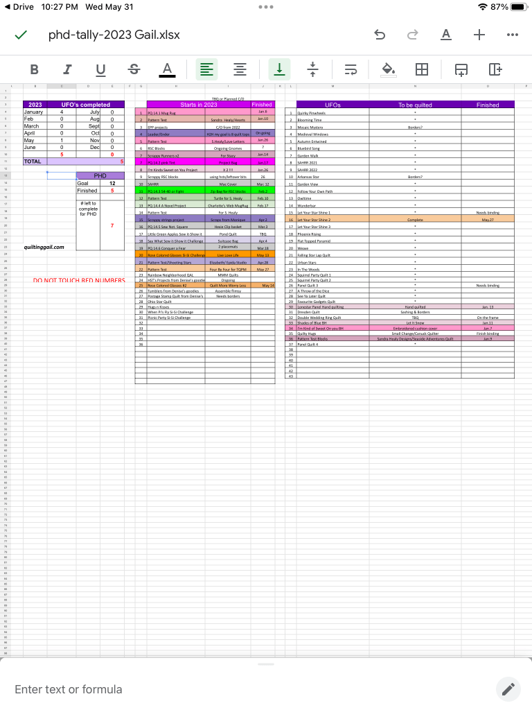 1. To finish 3 UFO’s from my PHD list: Only got one finished so far, but I did get my DWR finished to a flimsy, and it’s loaded on the longarm and quilting has begun. 😢