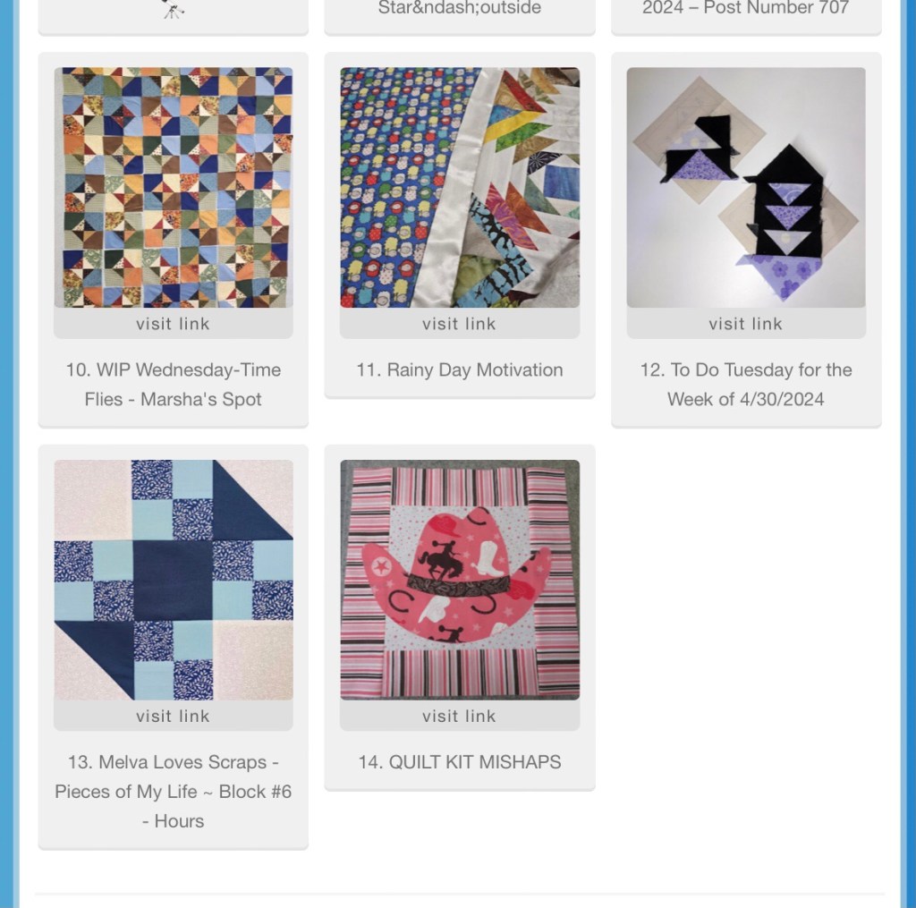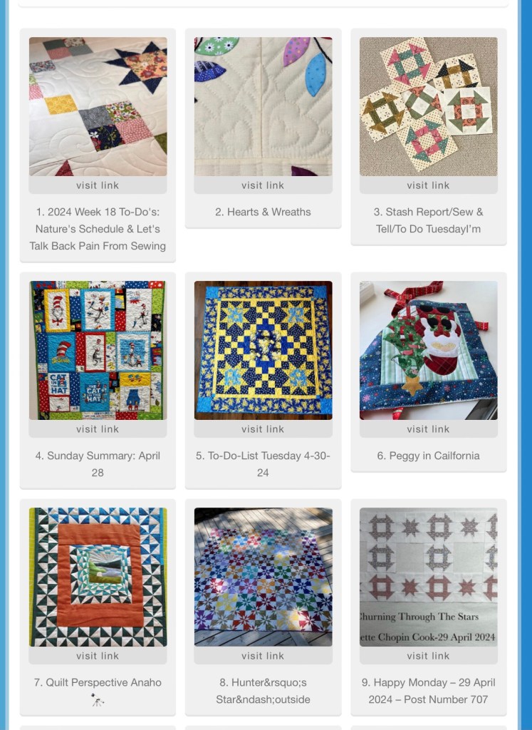 Once again life has interfered with my plans to visit each of the people who joined last week’s party. My hubby took a fall and needed care, but he is back up and around and hoping to get out on the course for a few holes of golf.