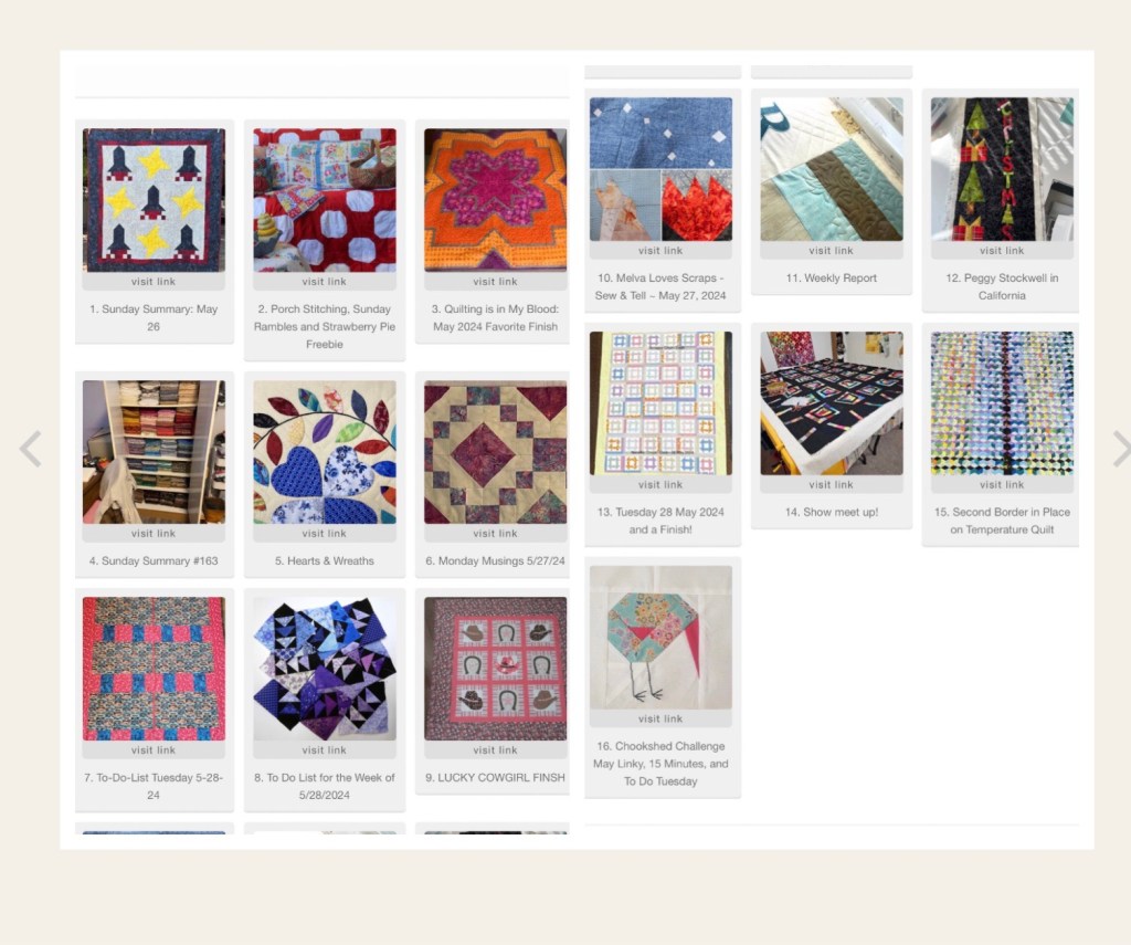 Don’t those little thumbnails make you want to go see what everyone is working on? I’m heading over to visit everyone as soon as this post goes live (ooops! I know I’m late again). It was a busy week with appointments and organizing a golf tournament, but I managed sewing time 6 out of 7 days! 😉
