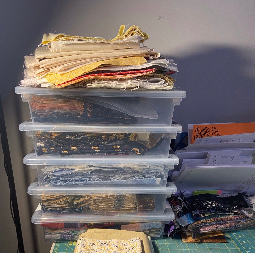 I like to link with Donna @ QuiltPaintCreate to keep track of fabric in and out of my stash. If I can plan a trip to the studio I expect my stash to be reduced terrifically when I start making backings for all of the quilt tops I’ve got to do. 😁