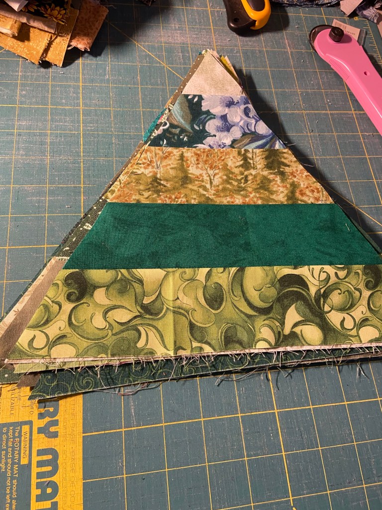 Now I’ll show you the quilts that are still WIPs and are either on my design wall (my bed when I’m working on layouts😉) or on my sewing or cutting tables;
