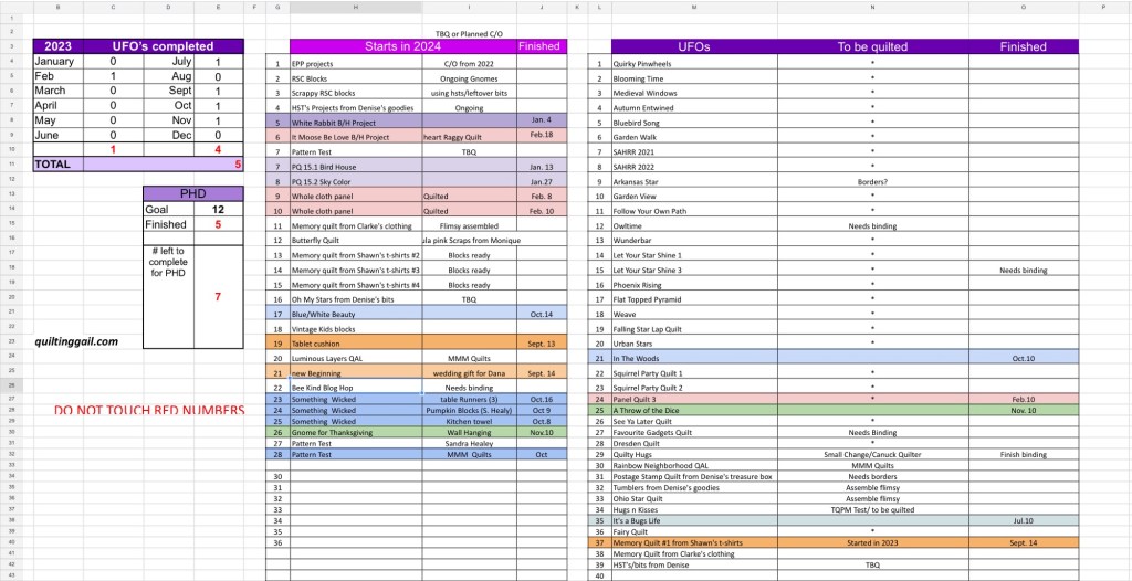 I like to link with Donna @ QuiltPaintCreate to keep track of fabric in and out of my stash. If I can plan a trip to the studio I expect my stash to be reduced terrifically when I start making backings for all of the quilt tops I’ve got to do. 😁