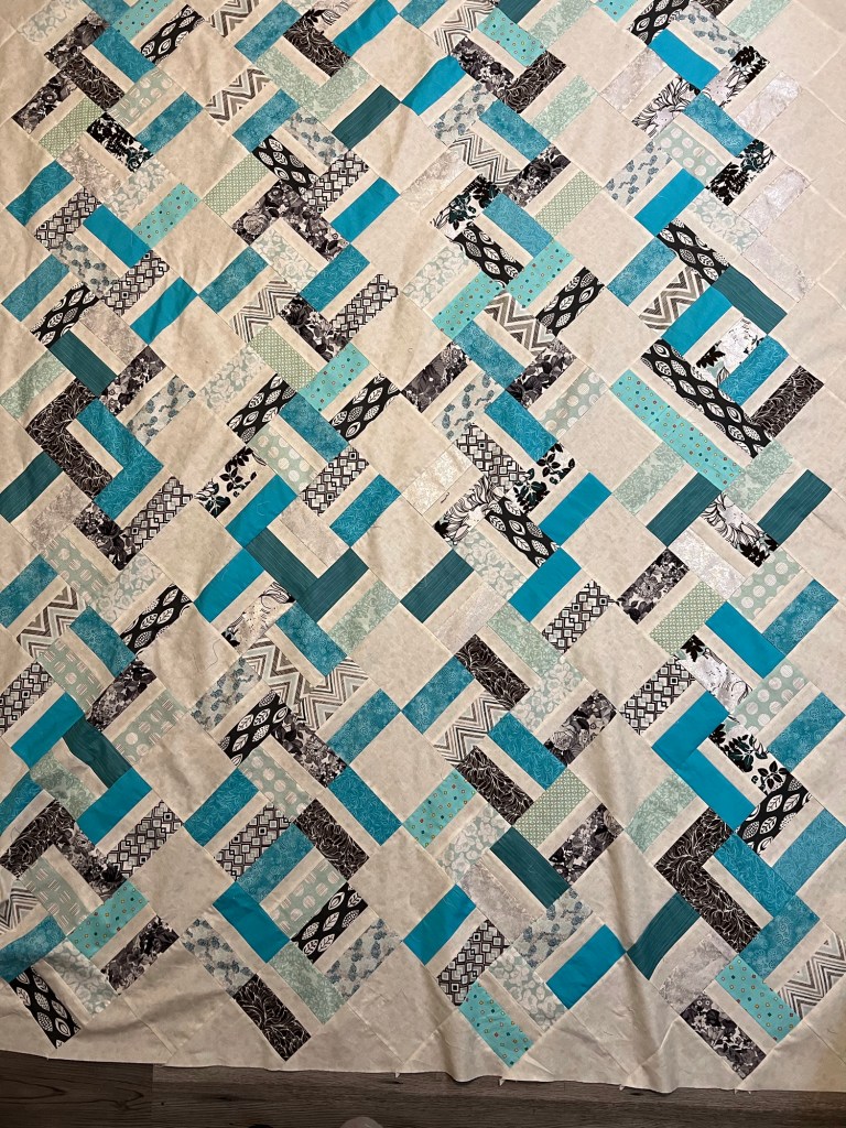1. “Coming Together”. A queen size quilt made for a mother to gift her daughter on an upcoming trip to spend time with her daughter and family in Israel. Quilted by me using Glide Thread (top and bobbin) with an Urban Elementz Panto Funky Flowers. Finished size 98” x 108” Completed Jan.2/2025
