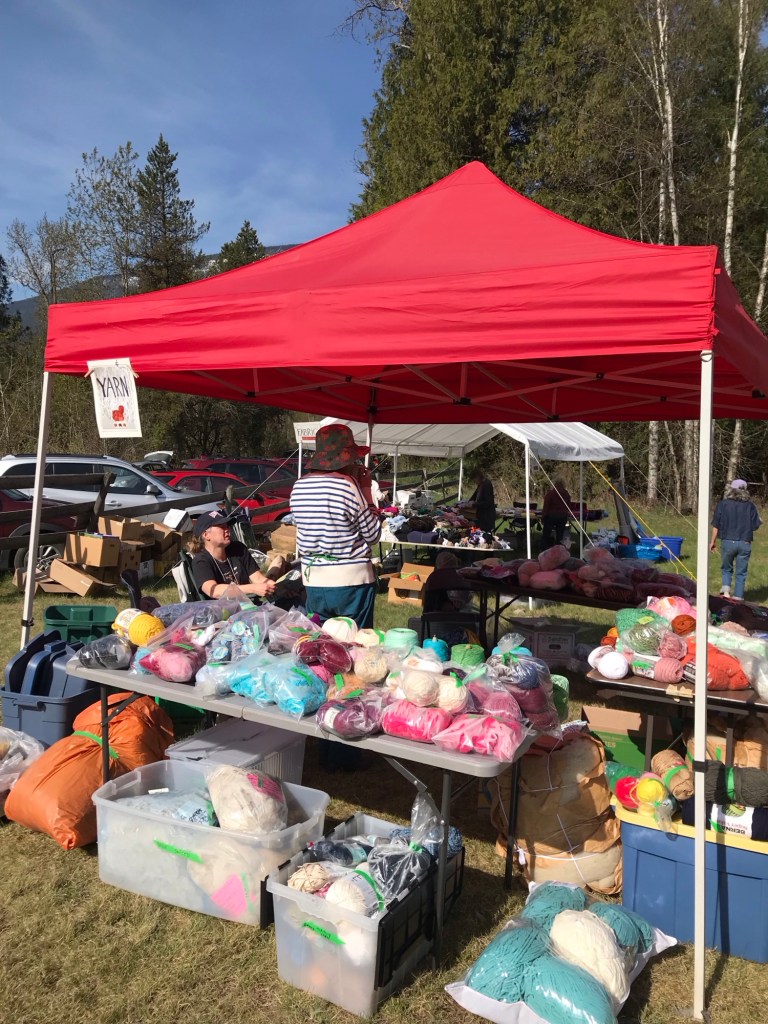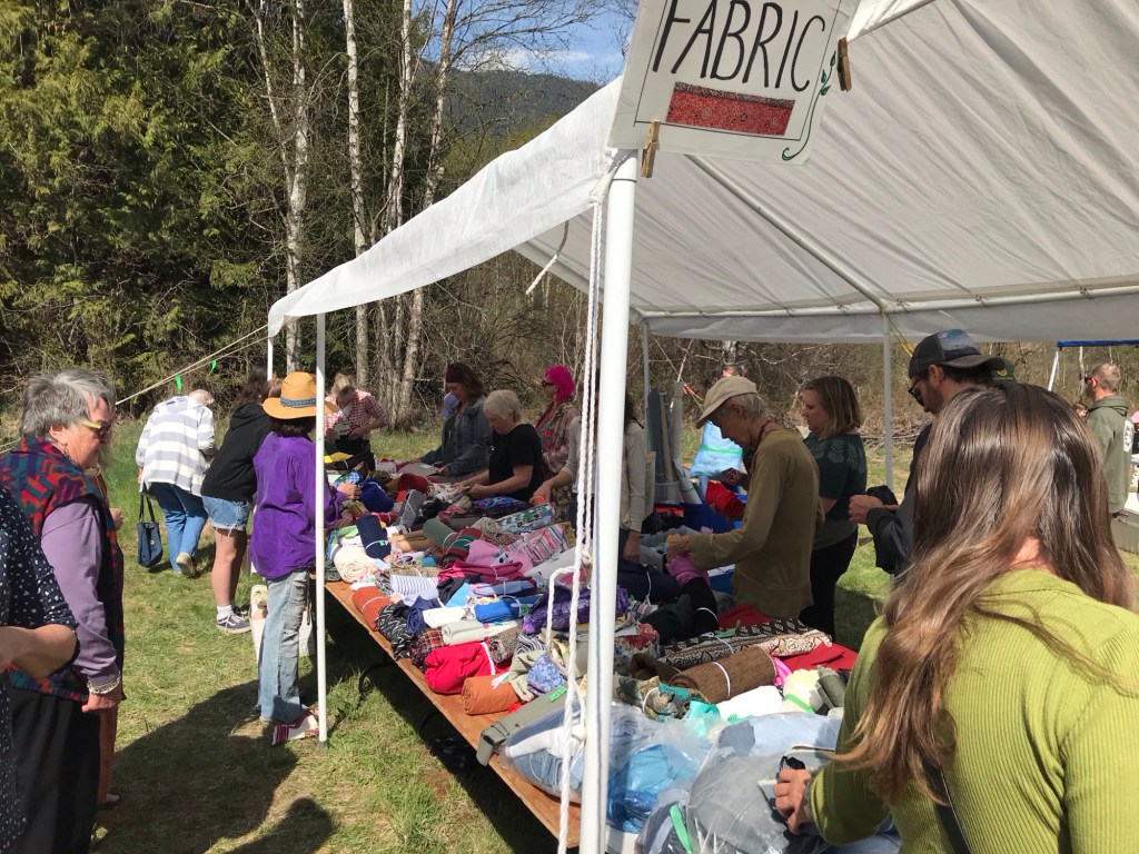 I’ll be watching to see what you make with your treasures. Can you believe the only things I bought were a new set of felted dryer balls that were made by our members, some incredible cookies for my DH and a bag of fabric pieces (between 4 and 5 yards total). 😉