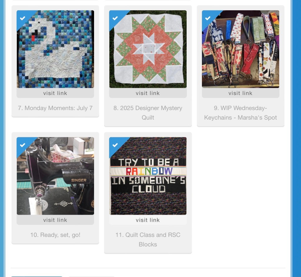 Don’t forget to visit the other participants. We all know how much fun it is to read and reply to comments. I hope you all have had and will have another creative week and make lots of progress getting those check marks on your lists!