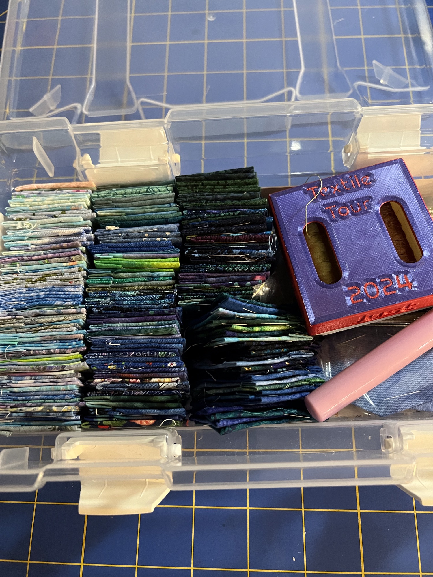 I like to link with Donna @ QuiltPaintCreate to keep track of fabric in and out of my stash. If I can plan trips to the studio I expect my stash to be reduced terrifically when I start making backings for all of the quilt tops I’ve got to do. 🤩