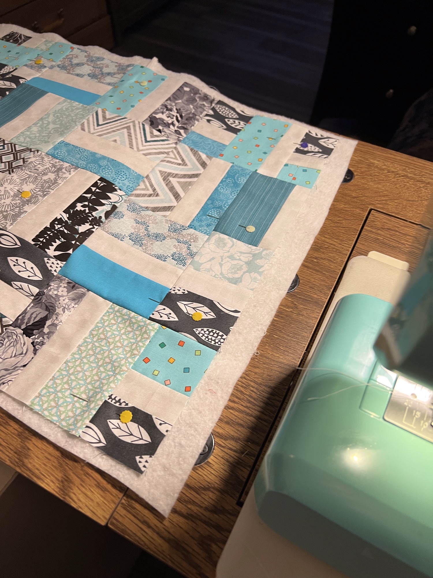 6. I’d like to make some progress on the memory quilts from all of my family’s t-shirts or clothing. No real progress but I did get 2 more blocks quilted 😳