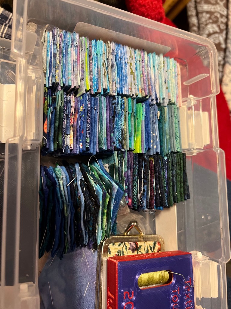 Last but not least I have to update my UFO Speadsheet and then try keeping it up to date and so help with my accountability now that I have gone through everything in my storage room and sewing space. I’ve pulled my lists of projects in my bins and have started to update my list.