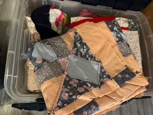 7. Finish the blocks for the quilt for C’s friend in Nova Scotia which will also use up some of the bits from my stack of project bins when I find the fabrics in my storage room bins. Still haven’t found the fabrics, but I only have 2 more bins to check! 😉