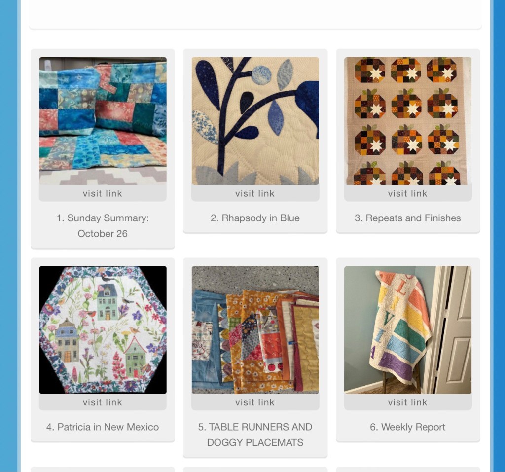 Did you have time to go visit each other and enjoy seeing the progress everyone’s made? I’m off to visit as soon as this post goes live. I’m getting my fill of quilty goodness seeing how you are all making progress on your projects.