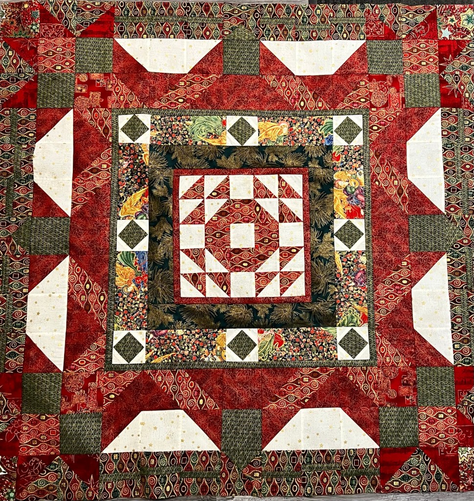 2. I like your fabric selection and think they work well together. The center medallion is intriguing and I would like to give it a try.