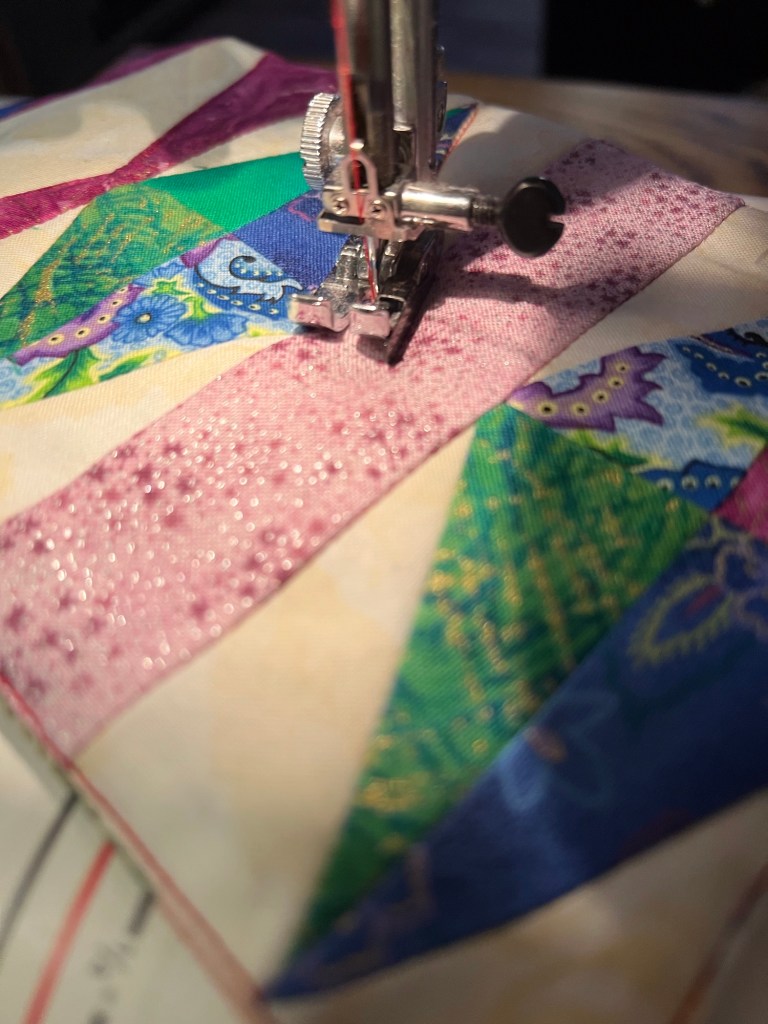 I sat at my sewing machine, working on an UFO from this past year, thinking of the challenge.