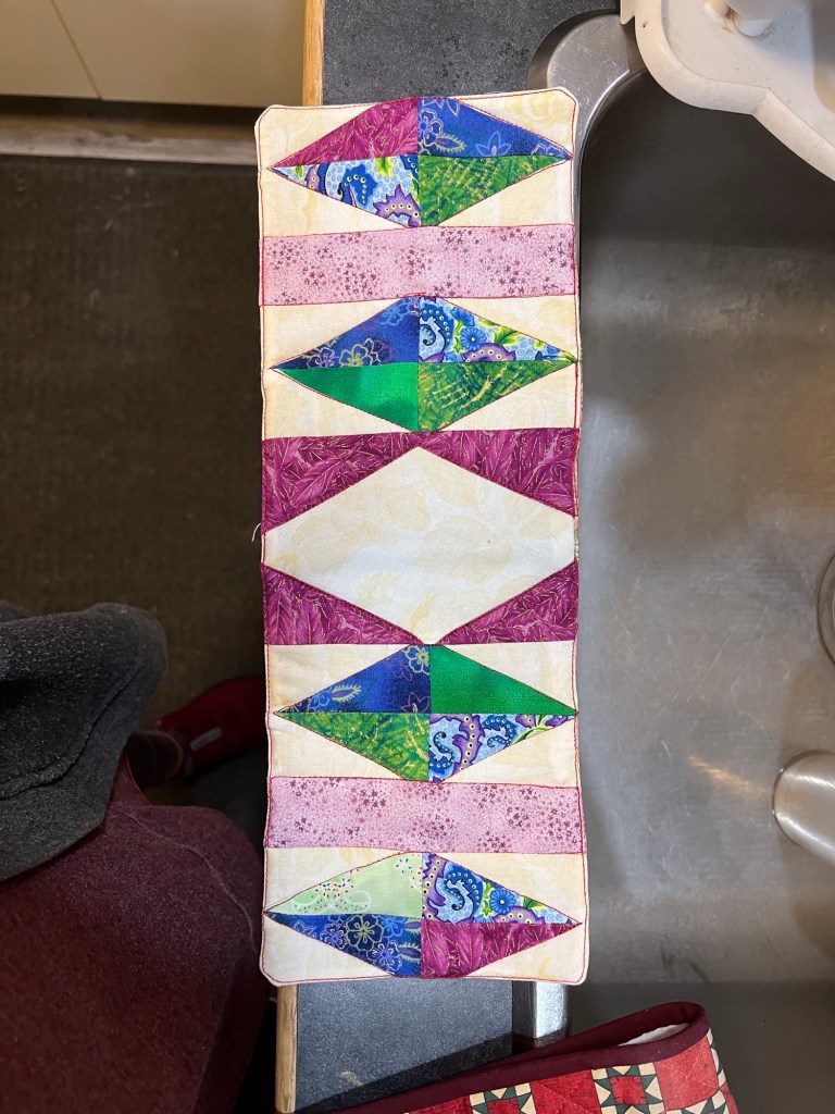 So began a new goal for the year: have a clean slate after I finish a quilt, by making a little mini quilt for my sweet little quilt rack. It will remind me of my student, her mother and fun projects I finish as the year goes by.